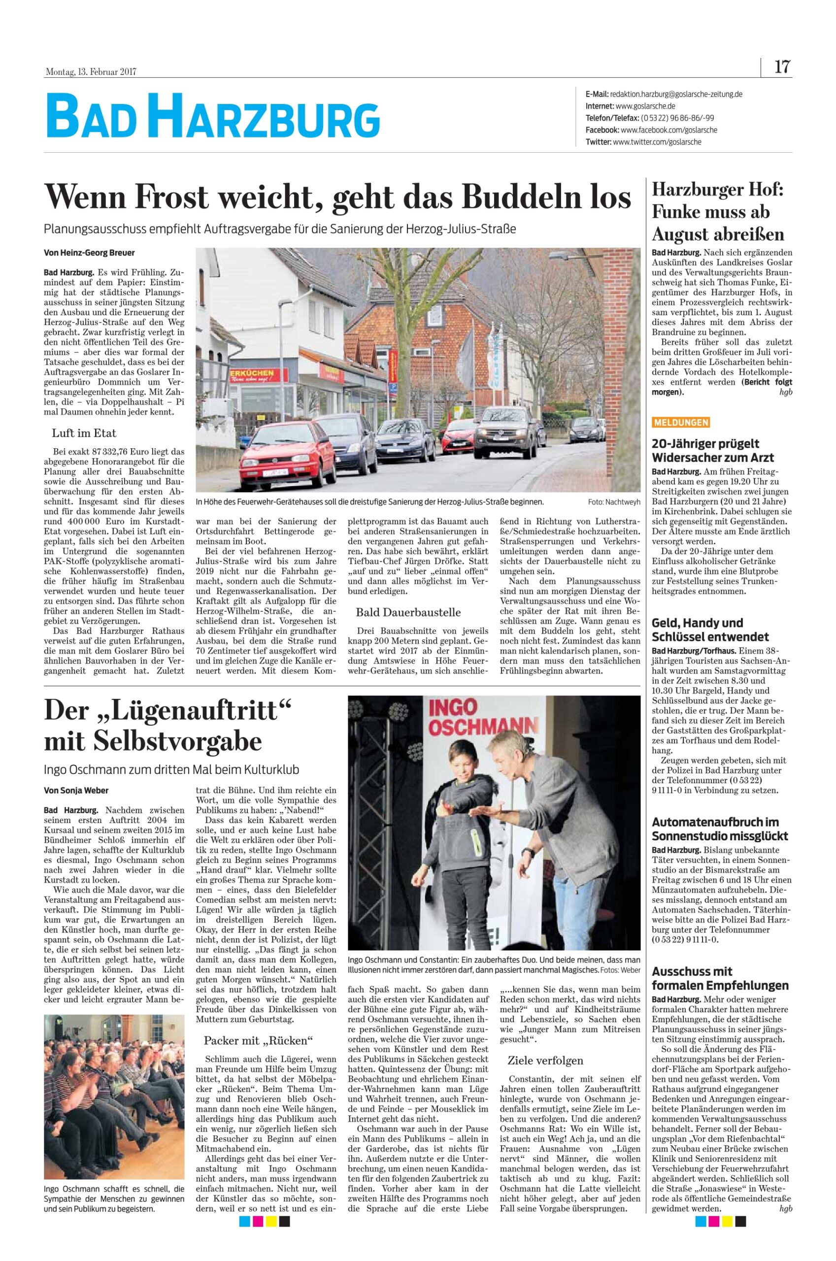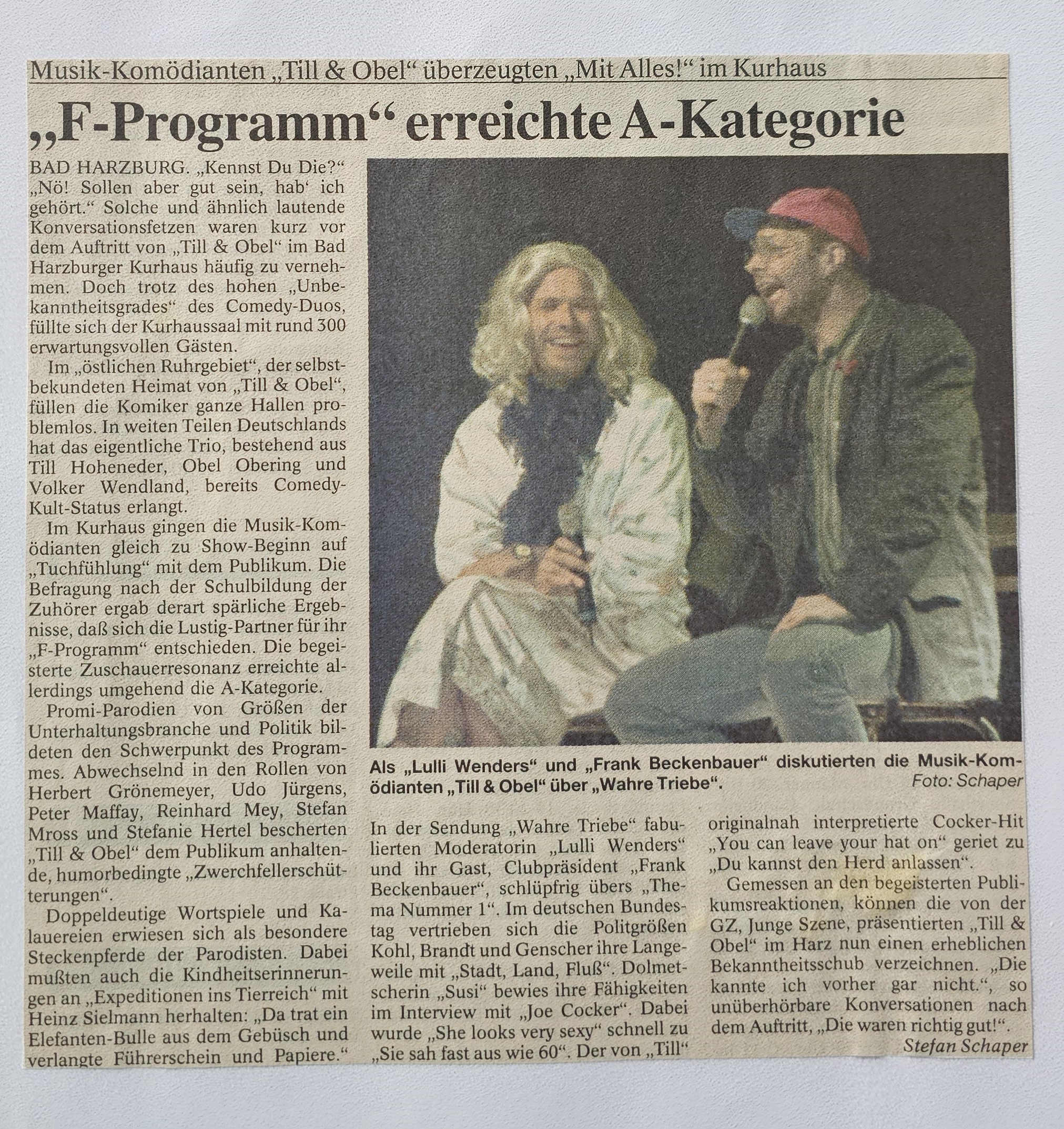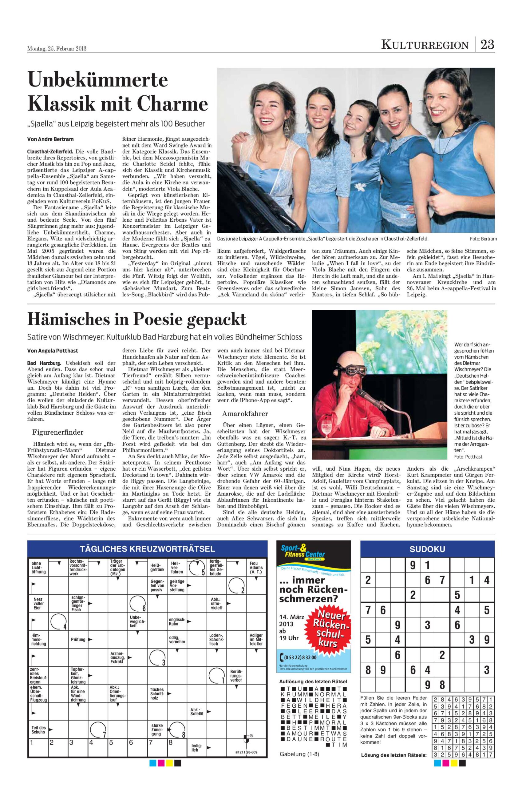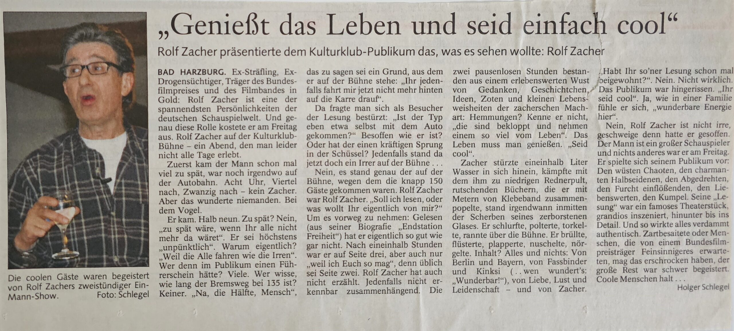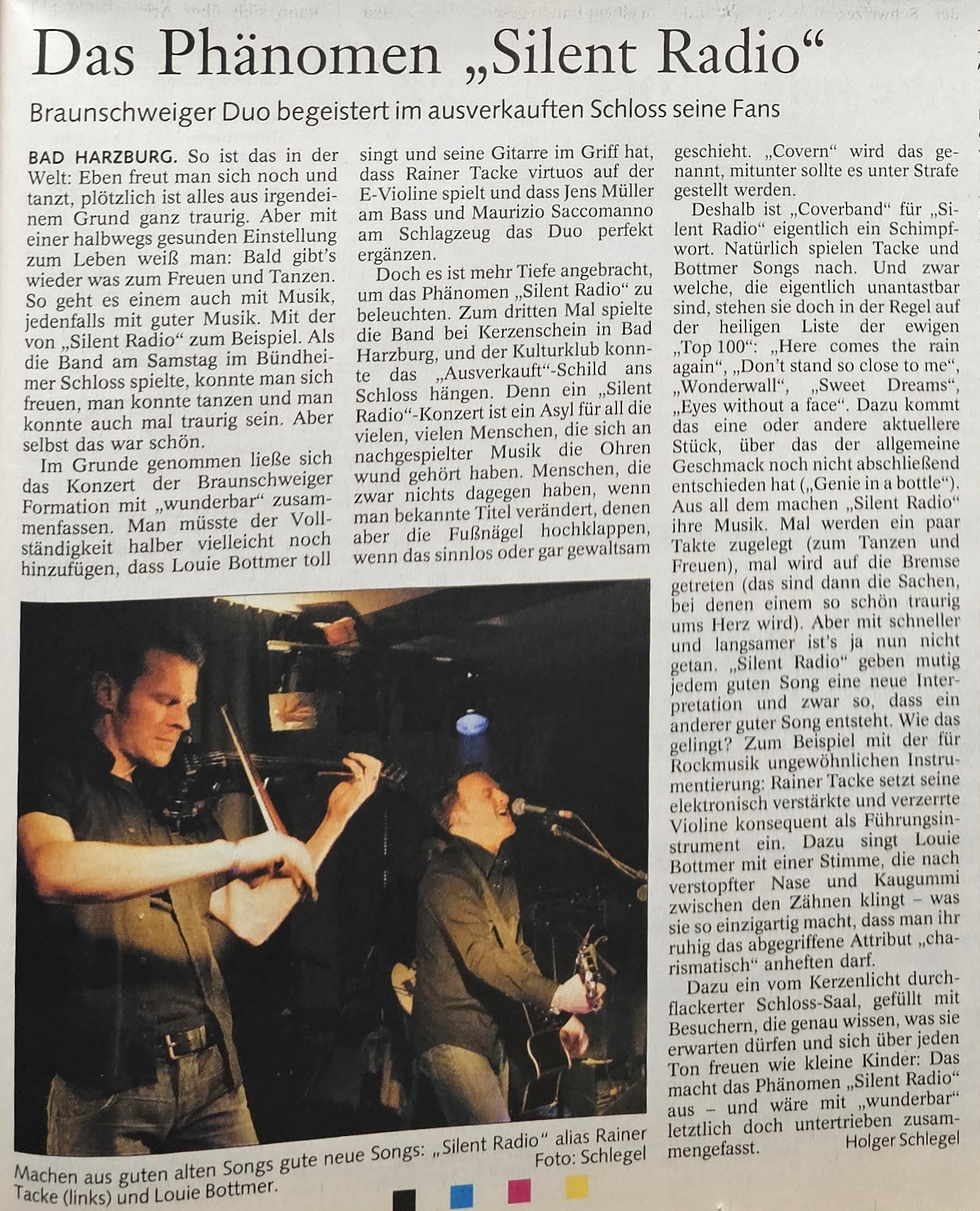 An dieser Stelle präsentieren wir Ihnen die Rezensionen unseres Programms aus der „Goslarschen Zeitung“. So können Sie noch einmal in Erinnerungen schwelgen und unsere Veranstaltungen in Ruhe Revue passieren lassen.