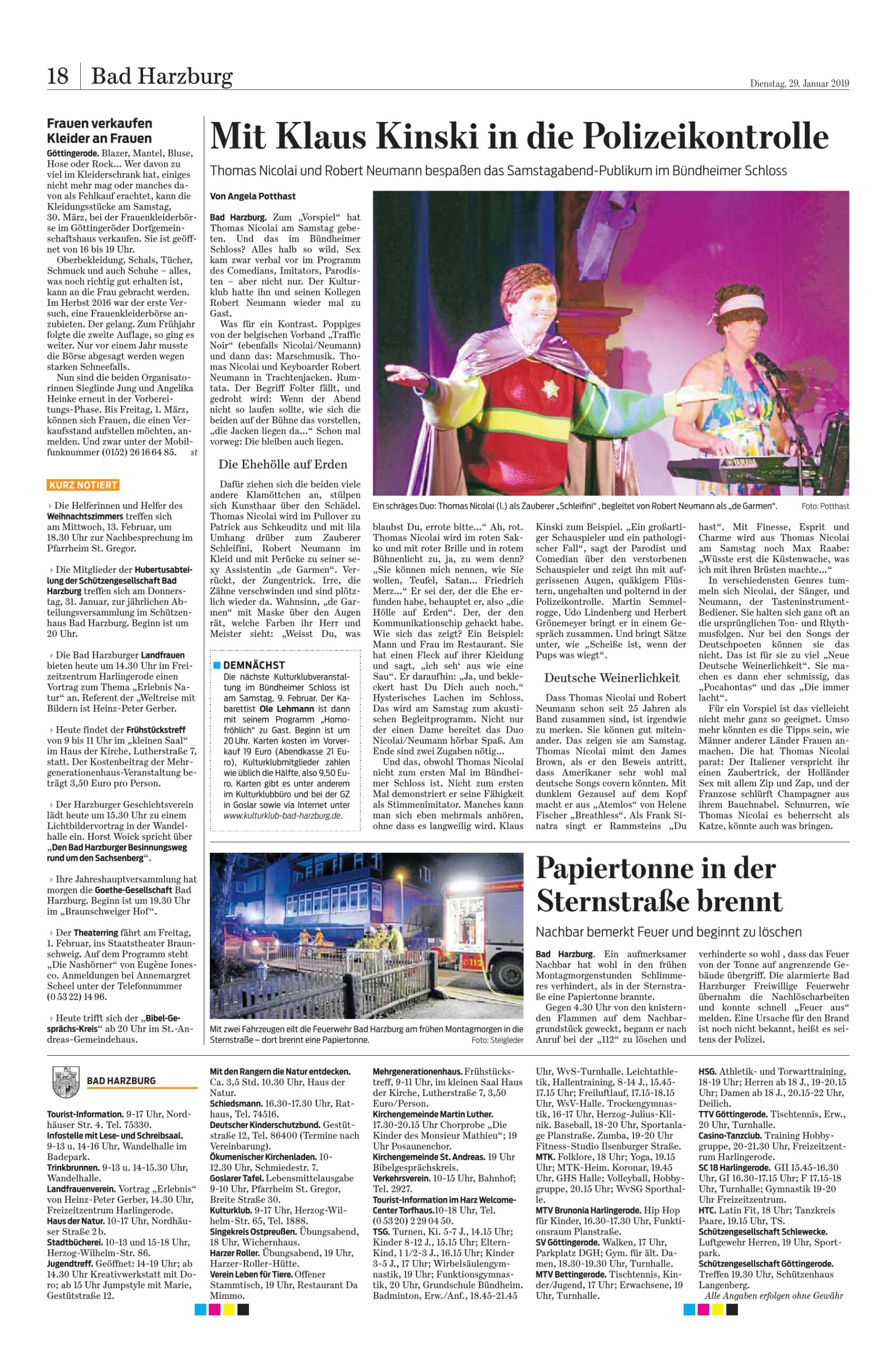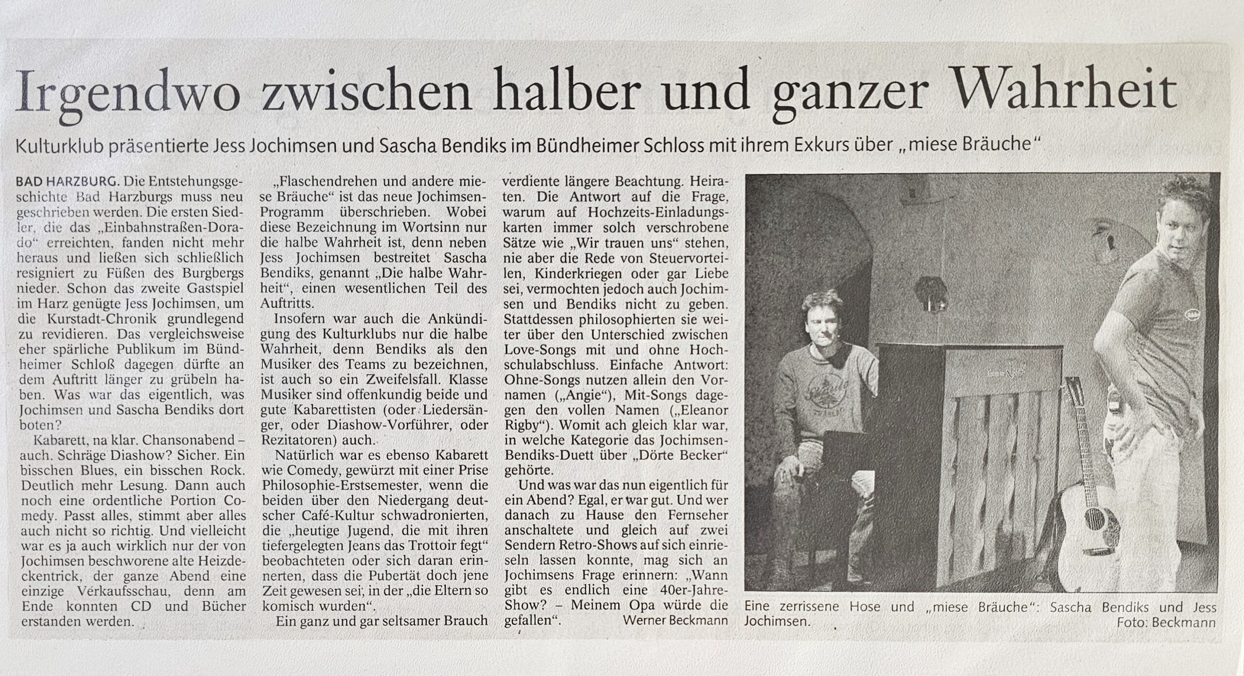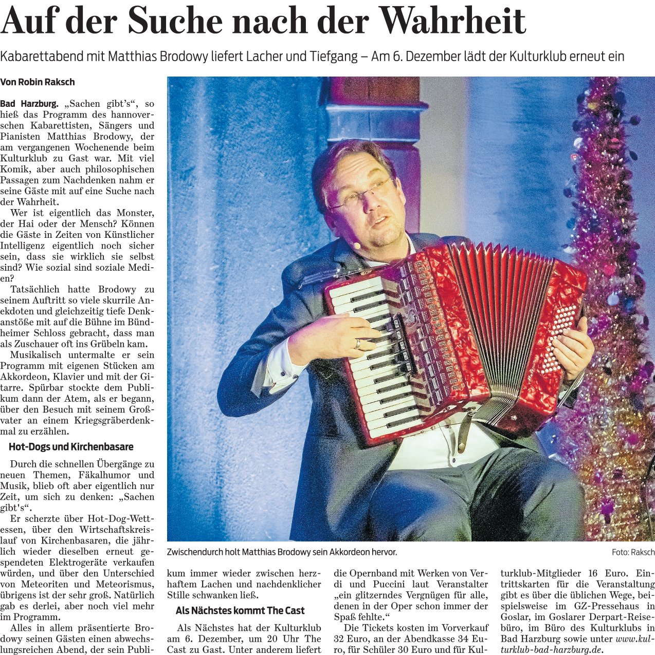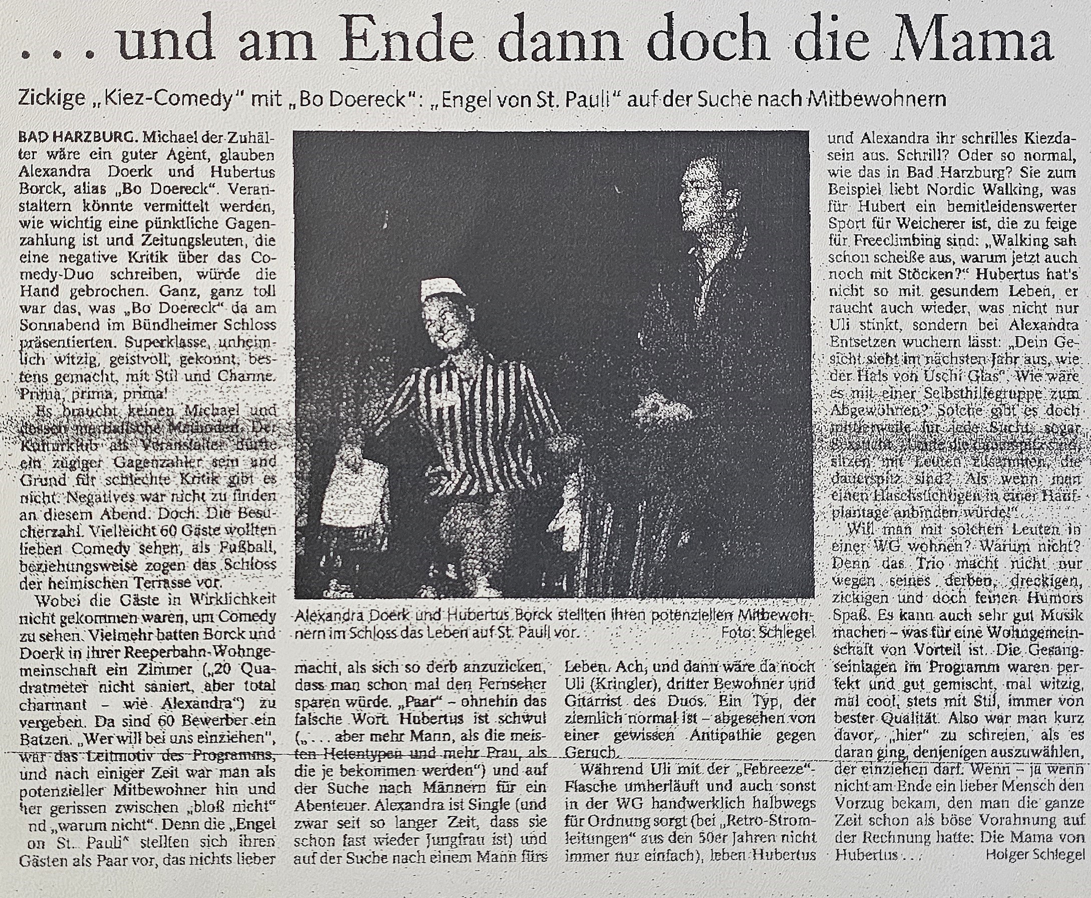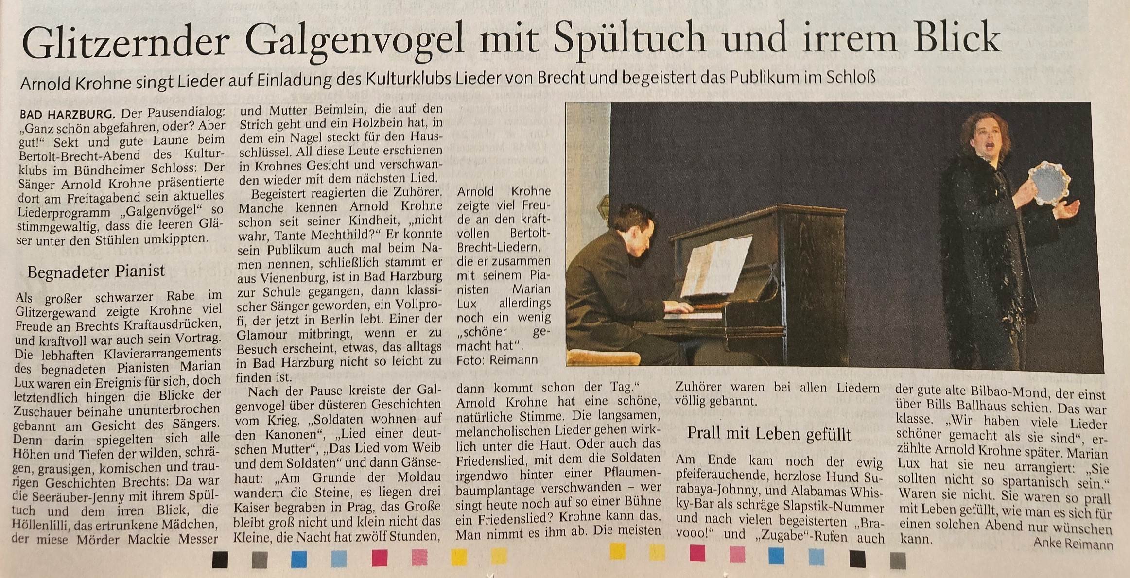 An dieser Stelle präsentieren wir Ihnen die Rezensionen unseres Programms aus der „Goslarschen Zeitung“. So können Sie noch einmal in Erinnerungen schwelgen und unsere Veranstaltungen in Ruhe Revue passieren lassen.