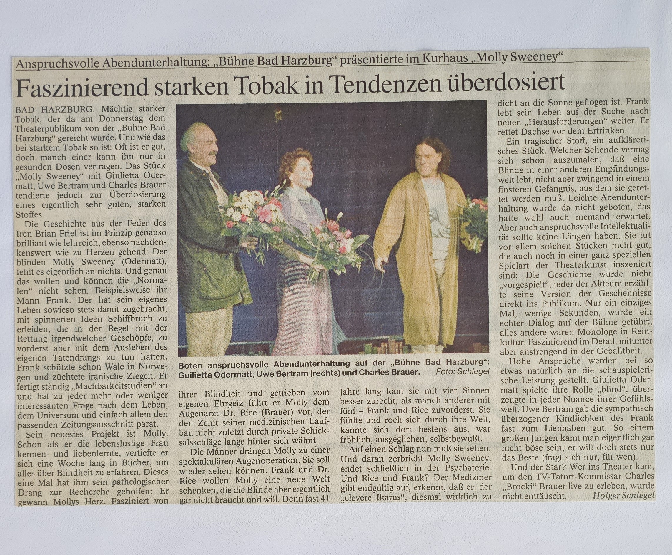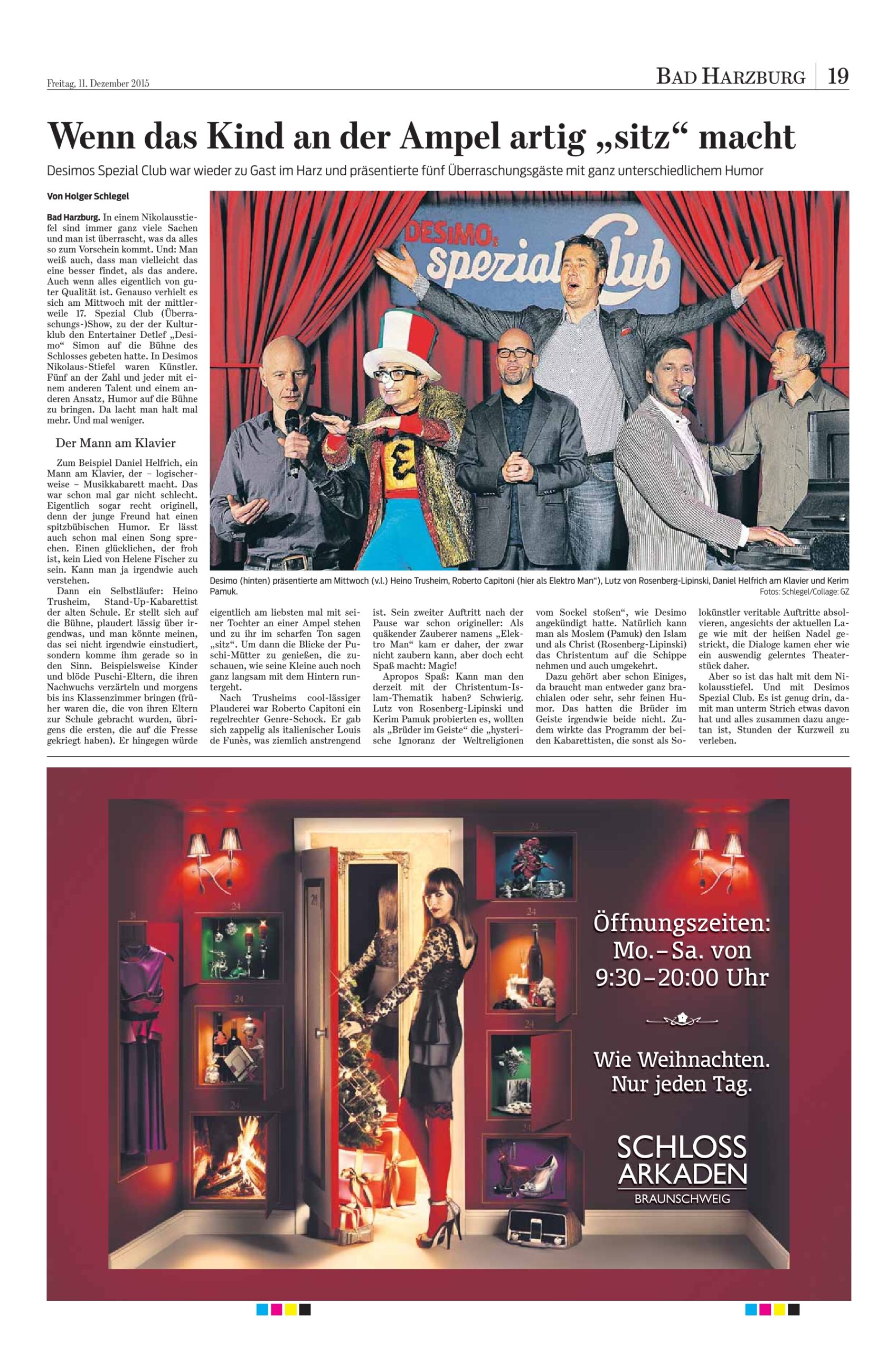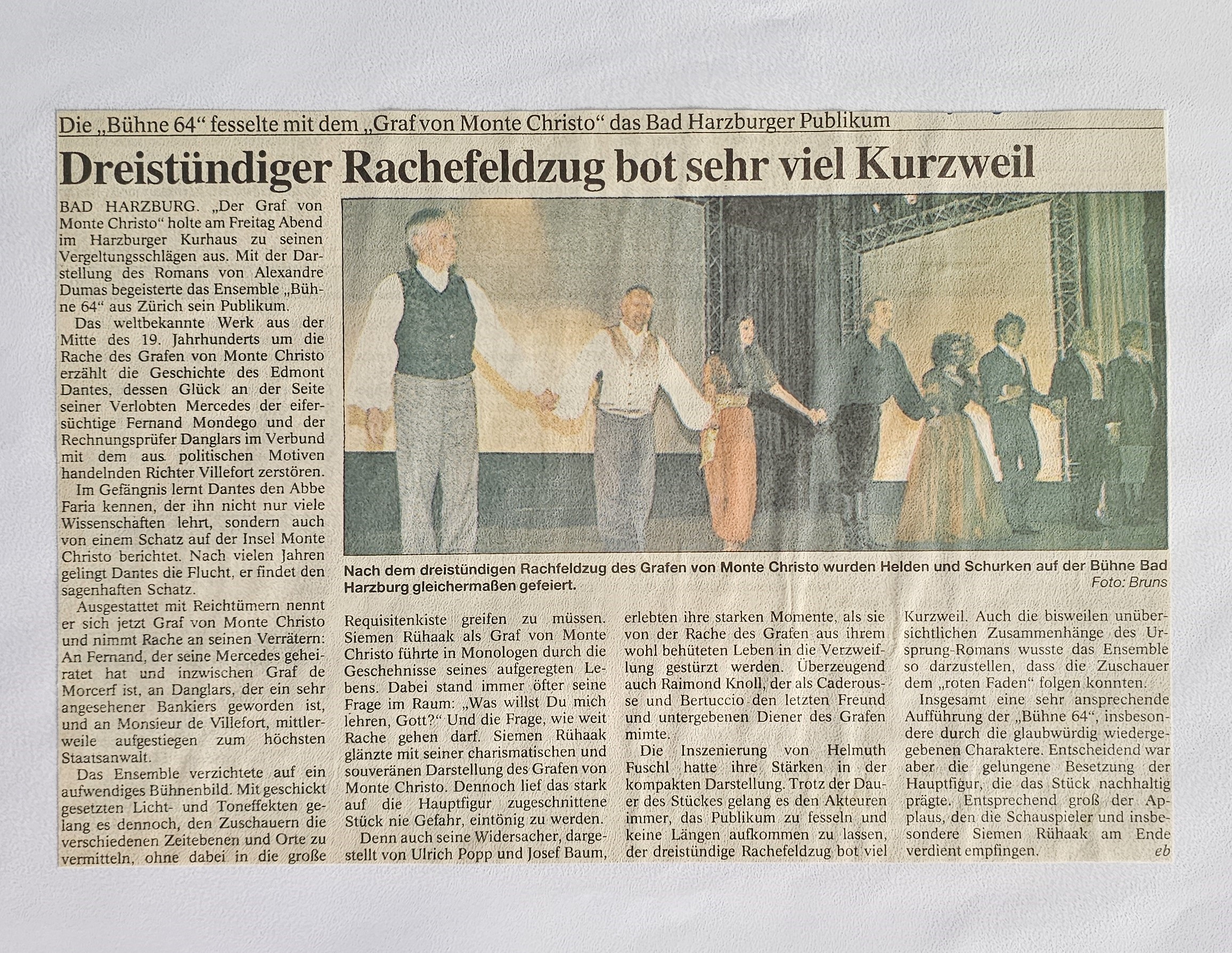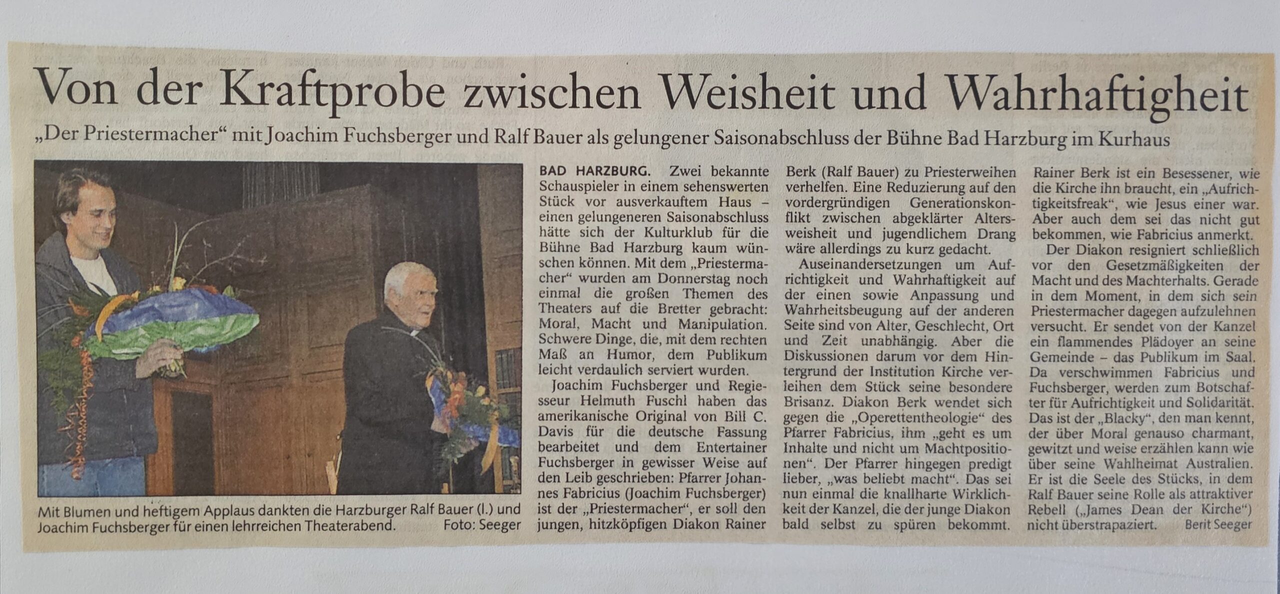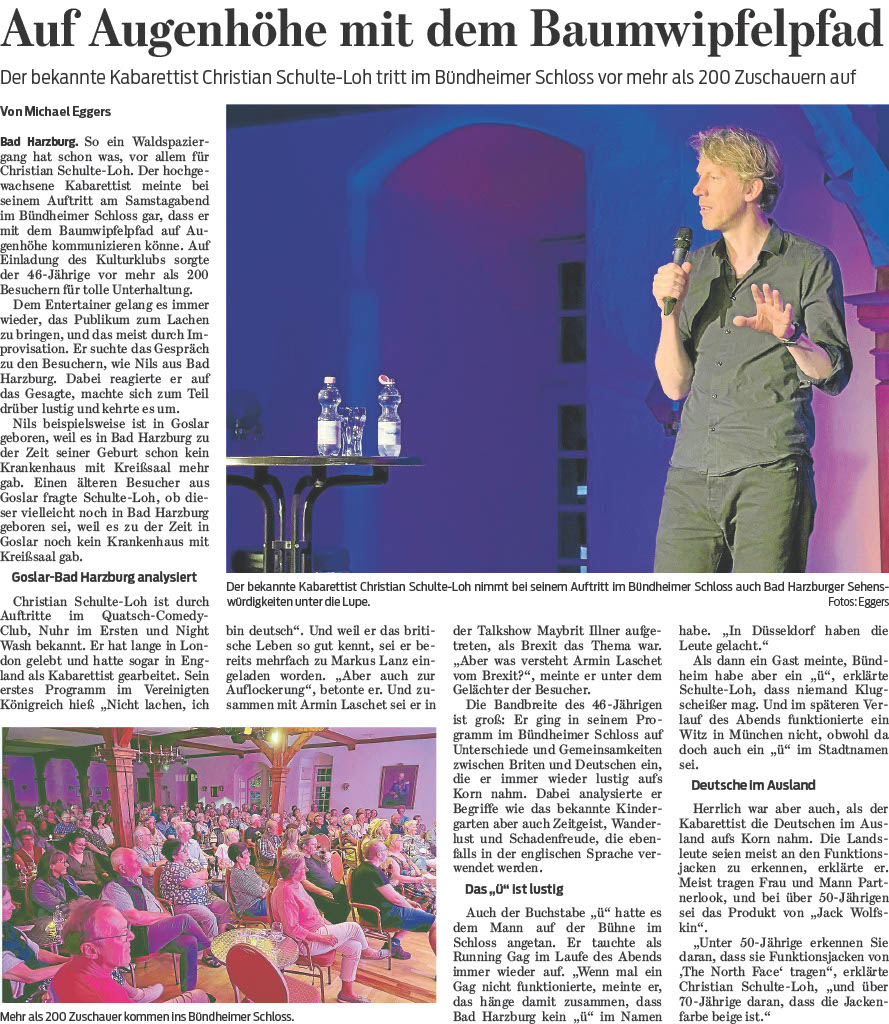 An dieser Stelle präsentieren wir Ihnen die Rezensionen unseres Programms aus der „Goslarschen Zeitung“. So können Sie noch einmal in Erinnerungen schwelgen und unsere Veranstaltungen in Ruhe Revue passieren lassen.