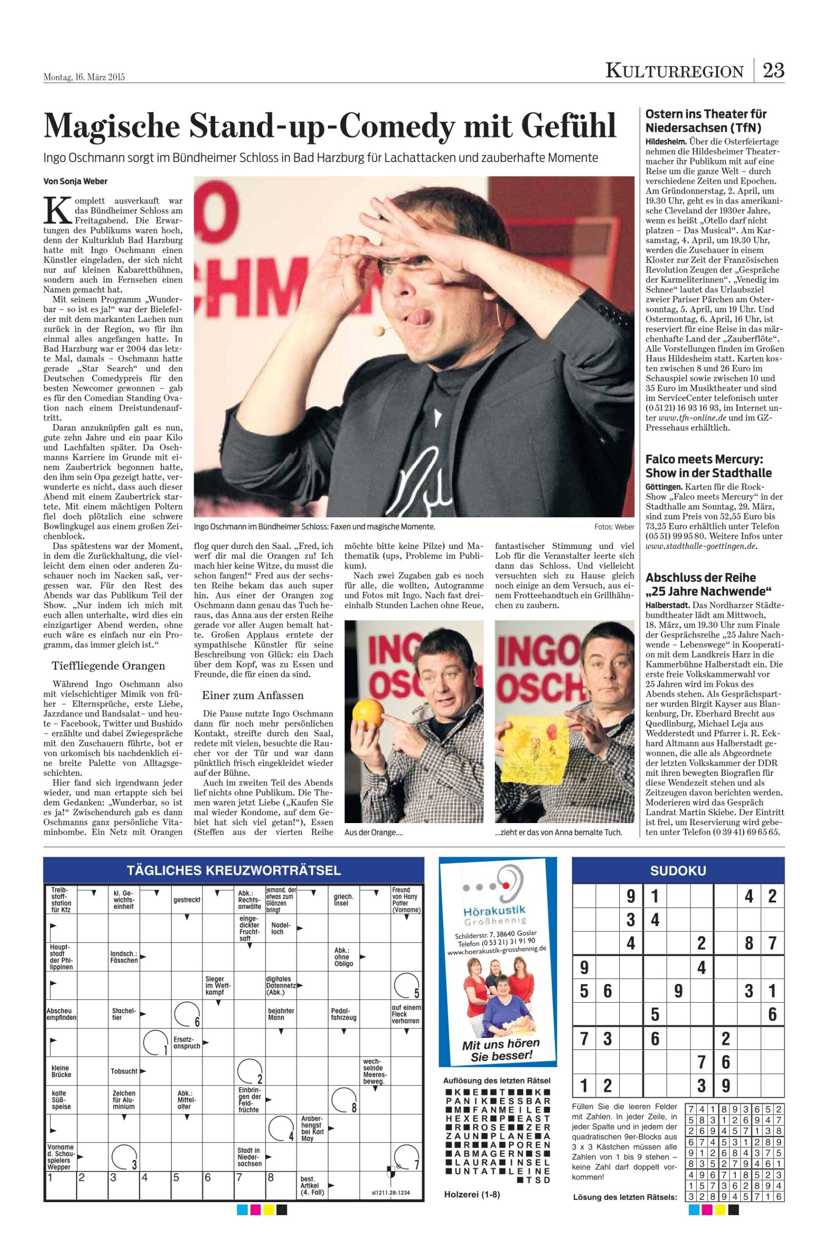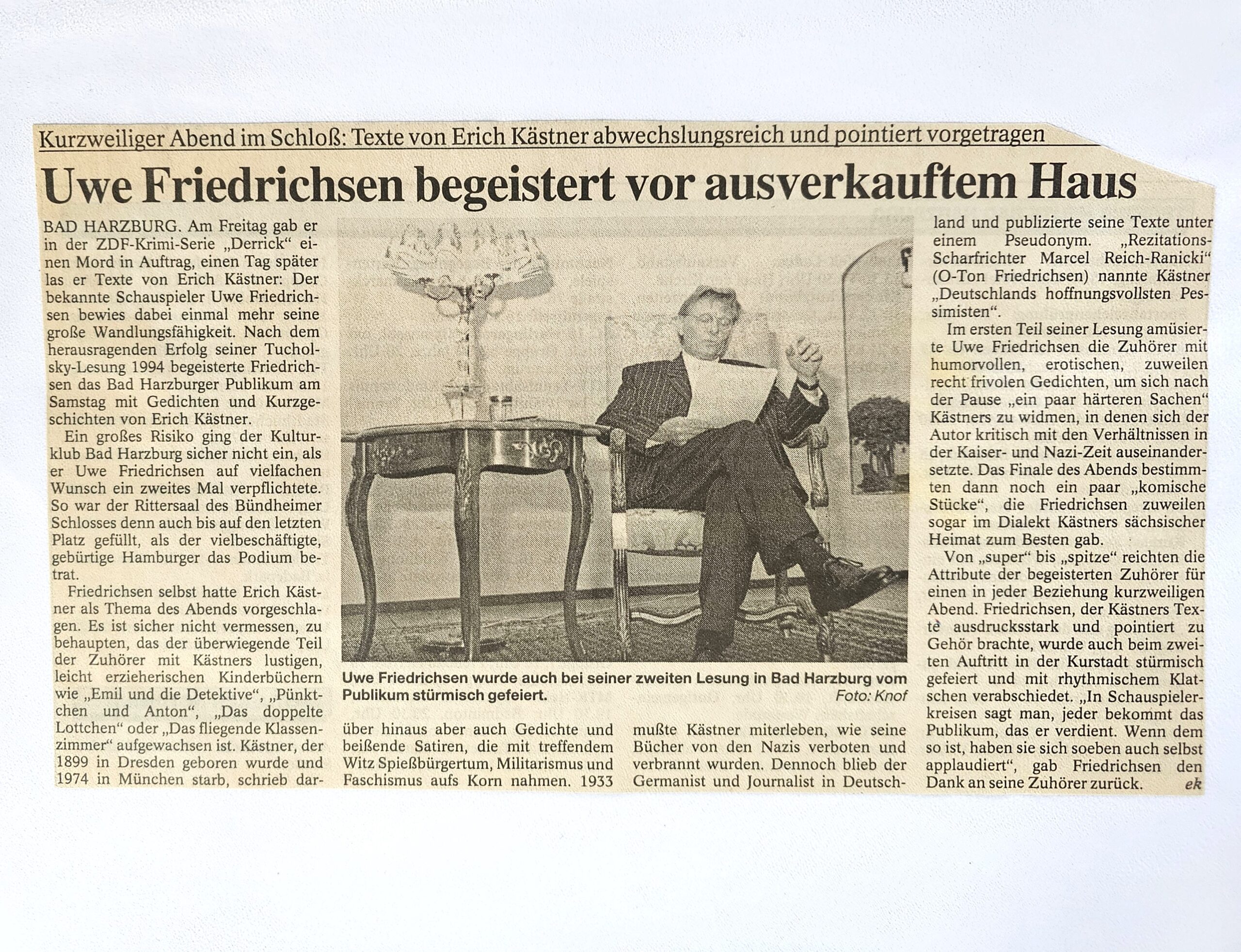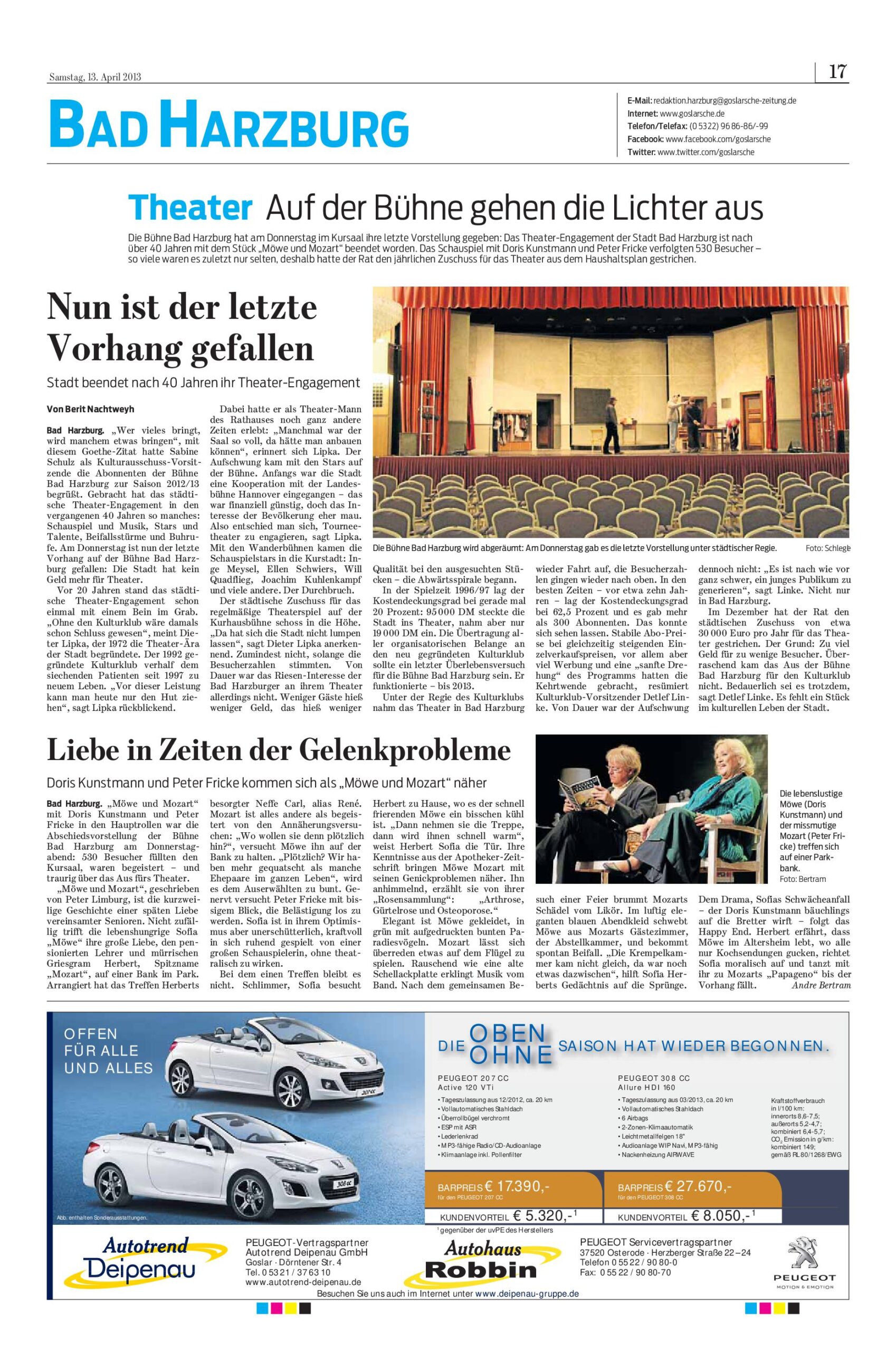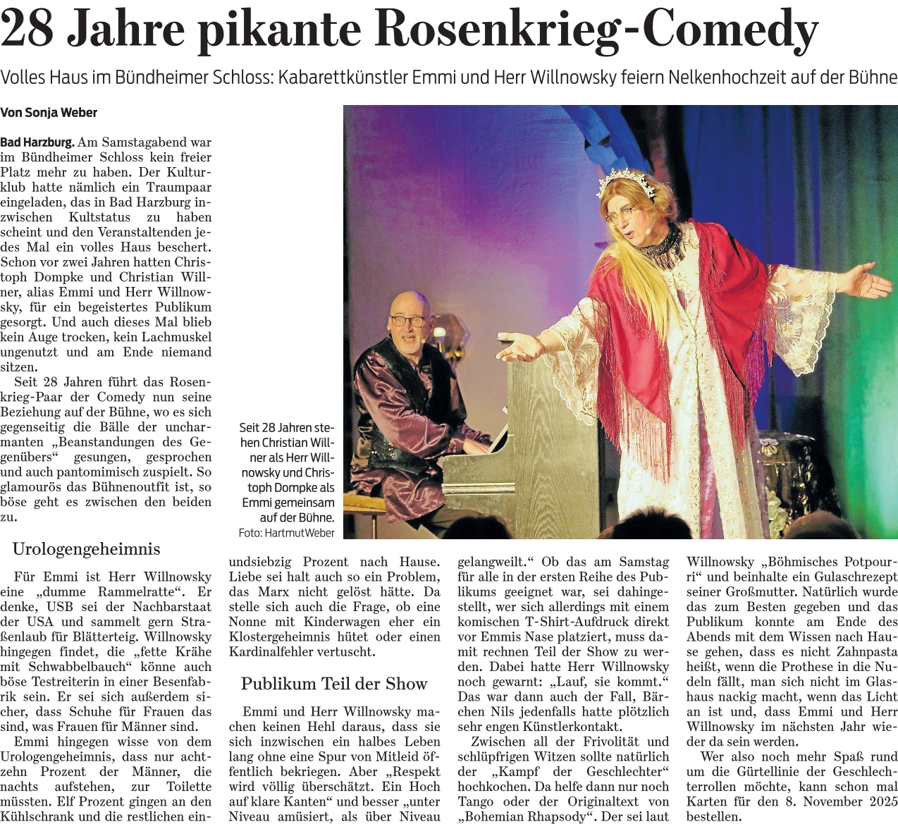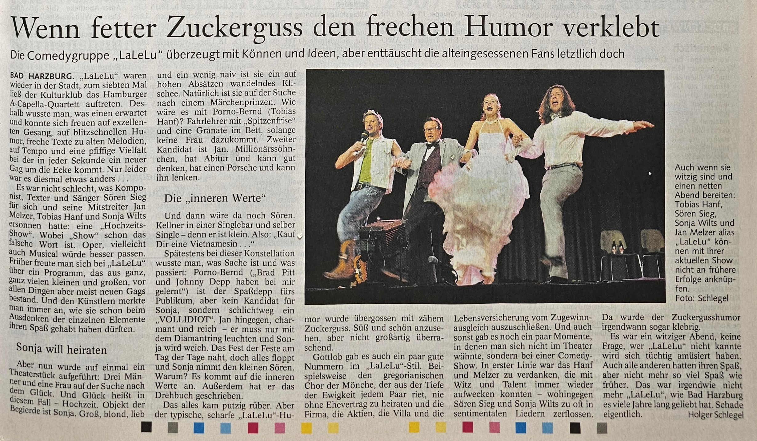 An dieser Stelle präsentieren wir Ihnen die Rezensionen unseres Programms aus der „Goslarschen Zeitung“. So können Sie noch einmal in Erinnerungen schwelgen und unsere Veranstaltungen in Ruhe Revue passieren lassen.