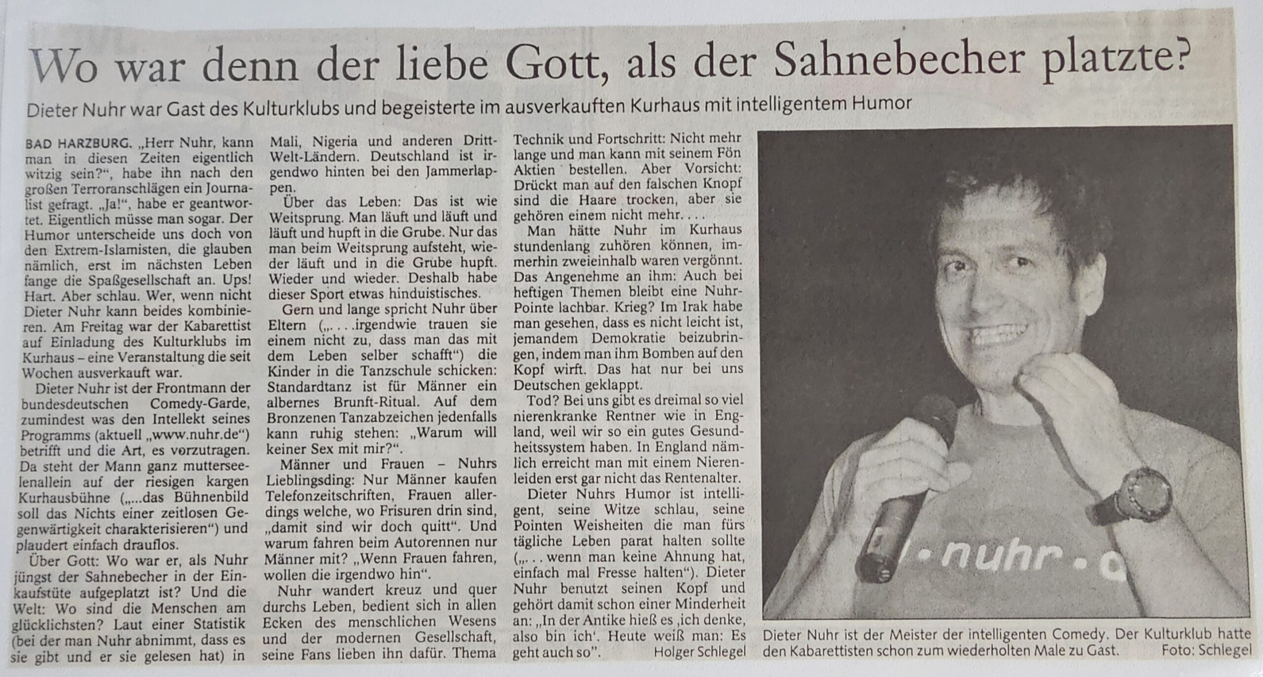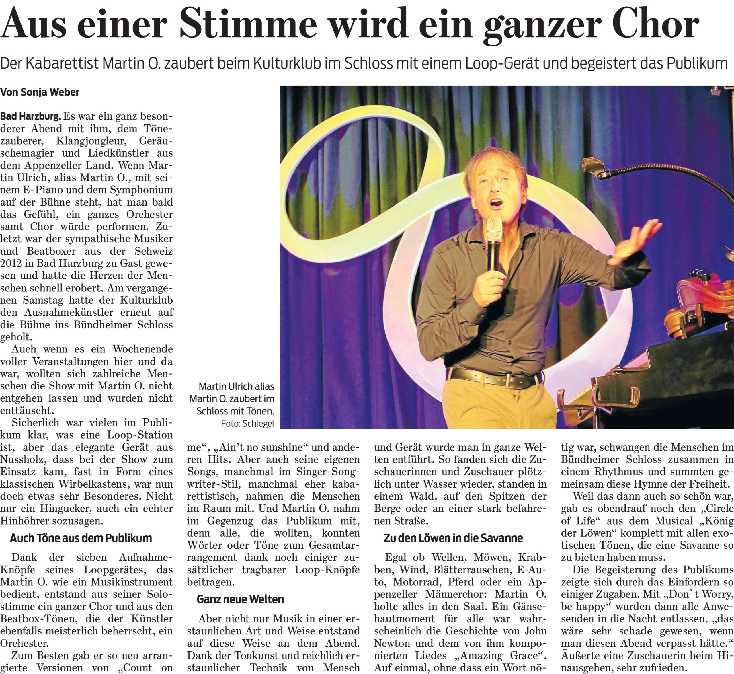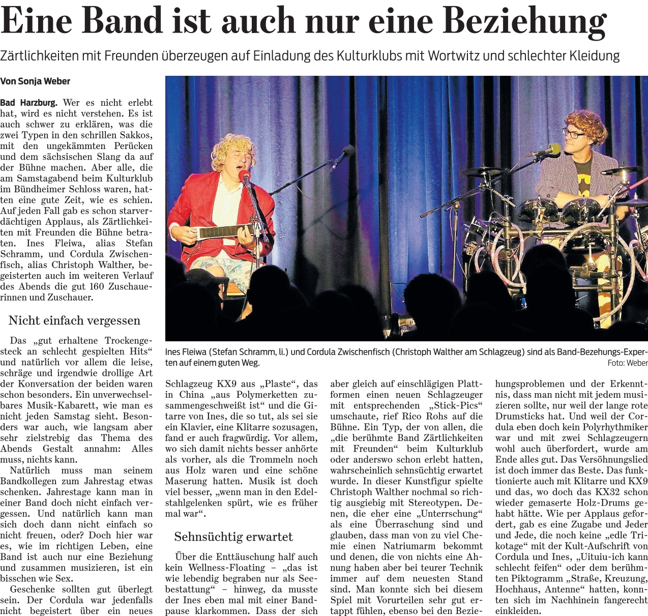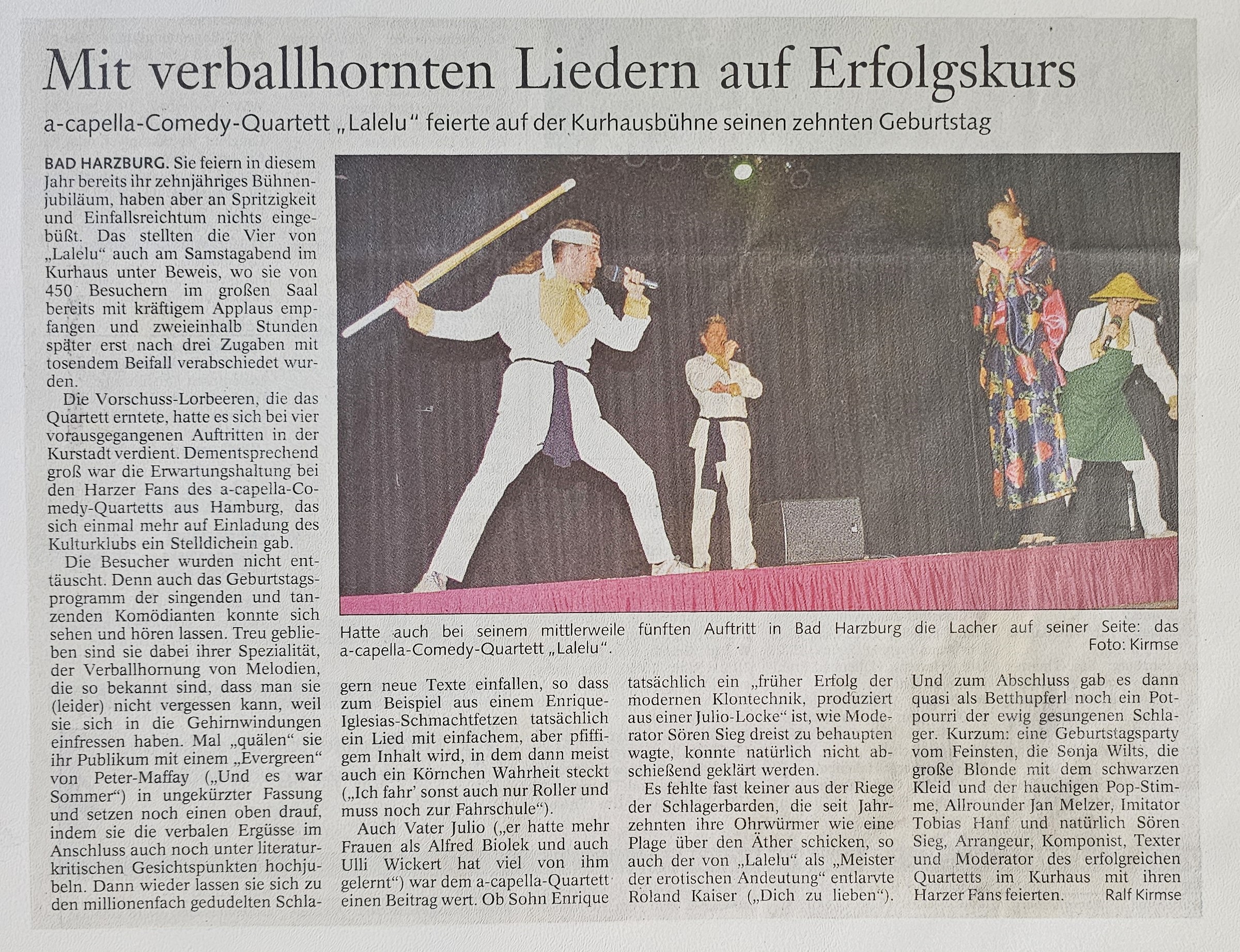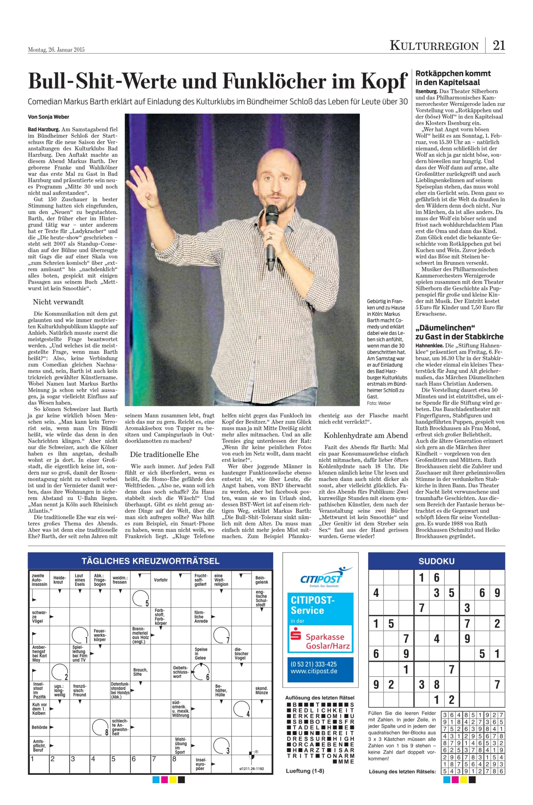 An dieser Stelle präsentieren wir Ihnen die Rezensionen unseres Programms aus der „Goslarschen Zeitung“. So können Sie noch einmal in Erinnerungen schwelgen und unsere Veranstaltungen in Ruhe Revue passieren lassen.