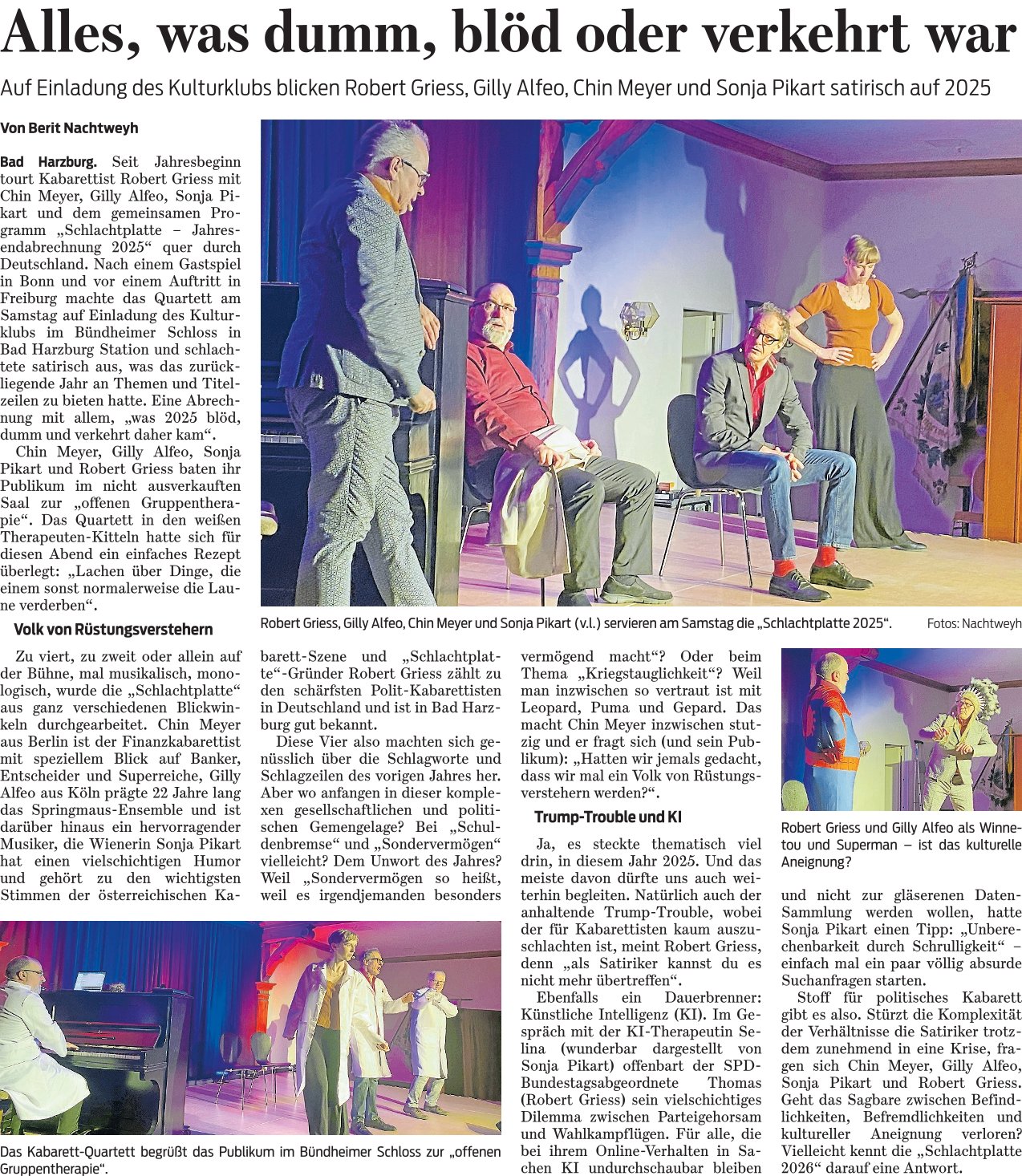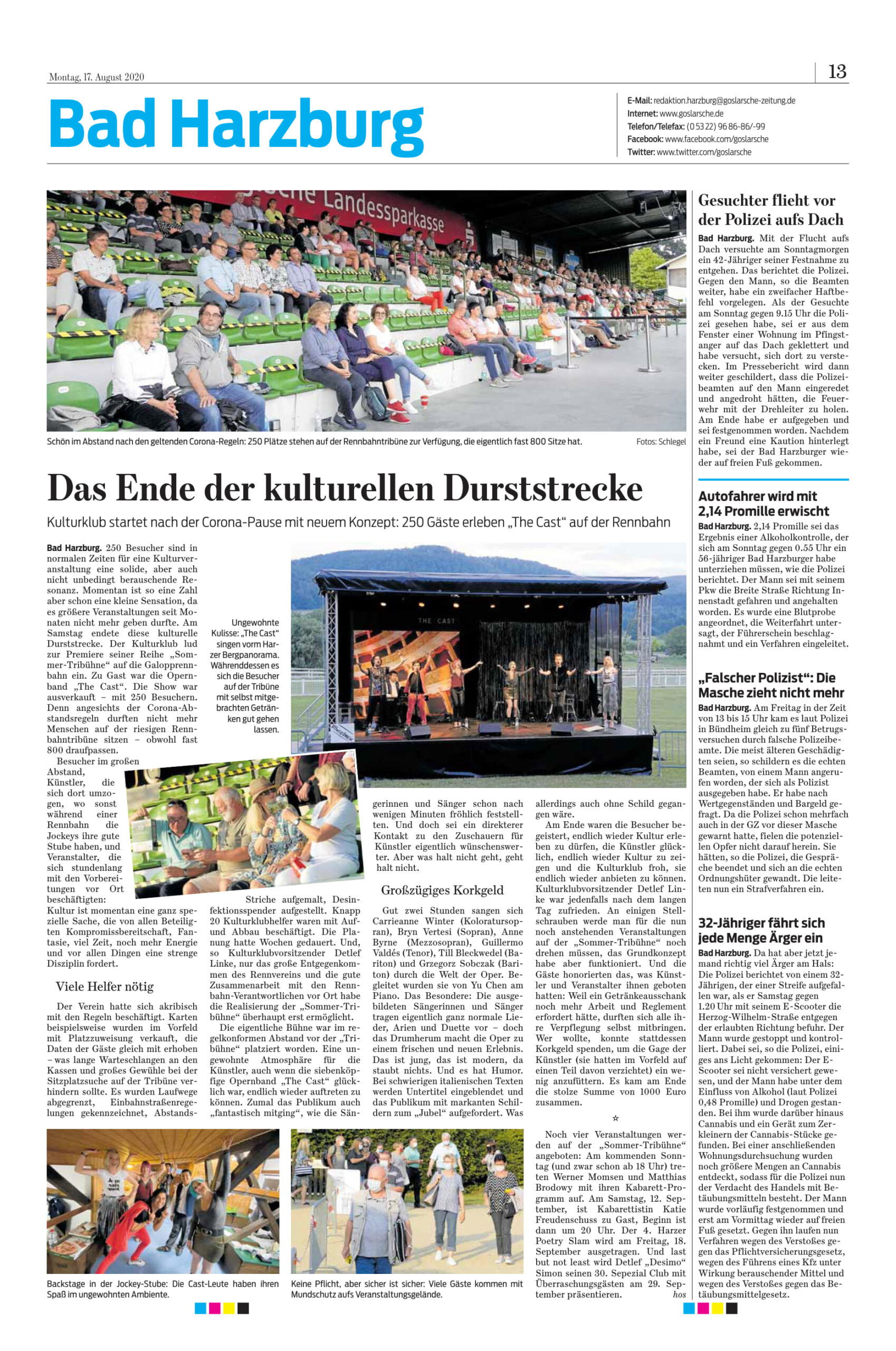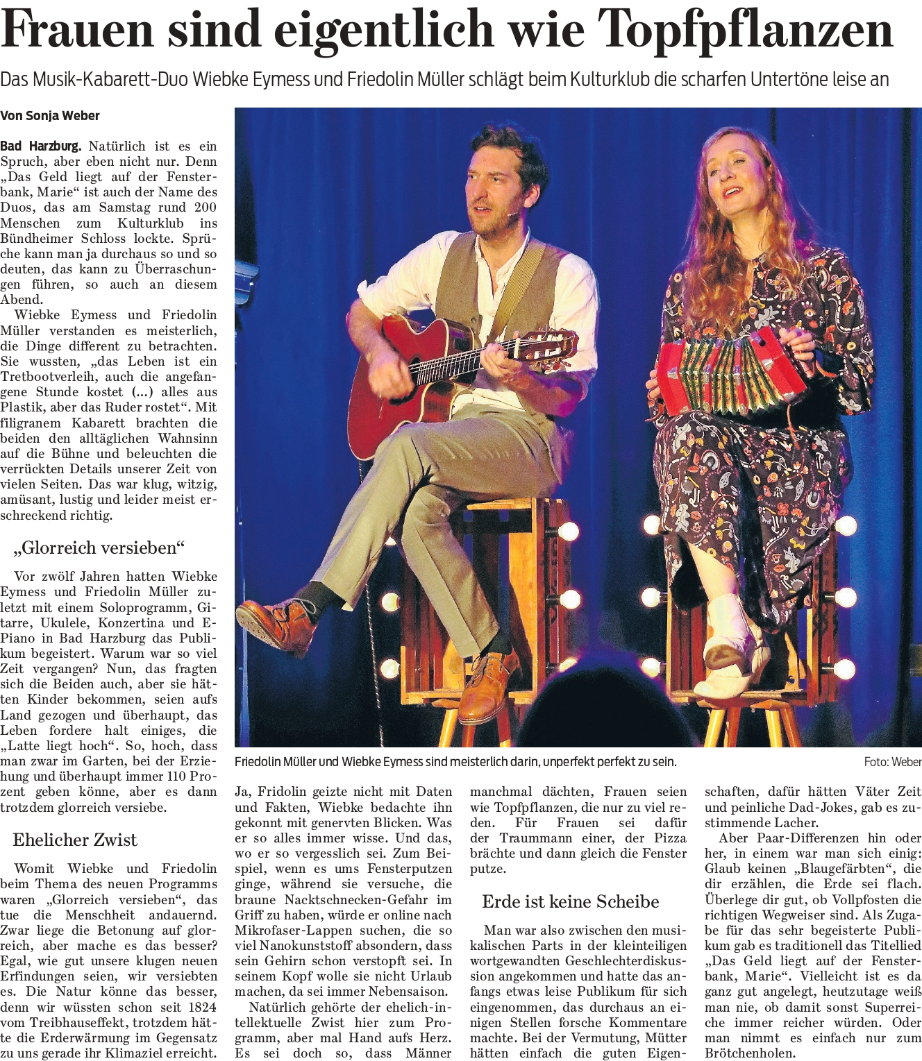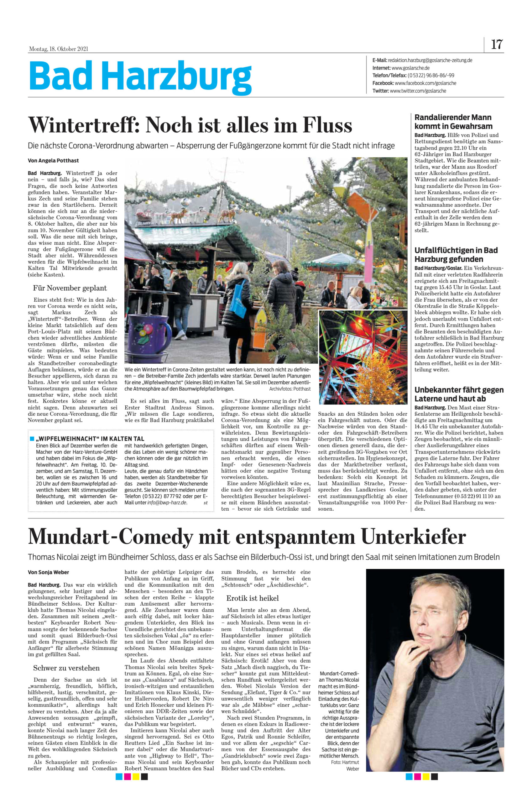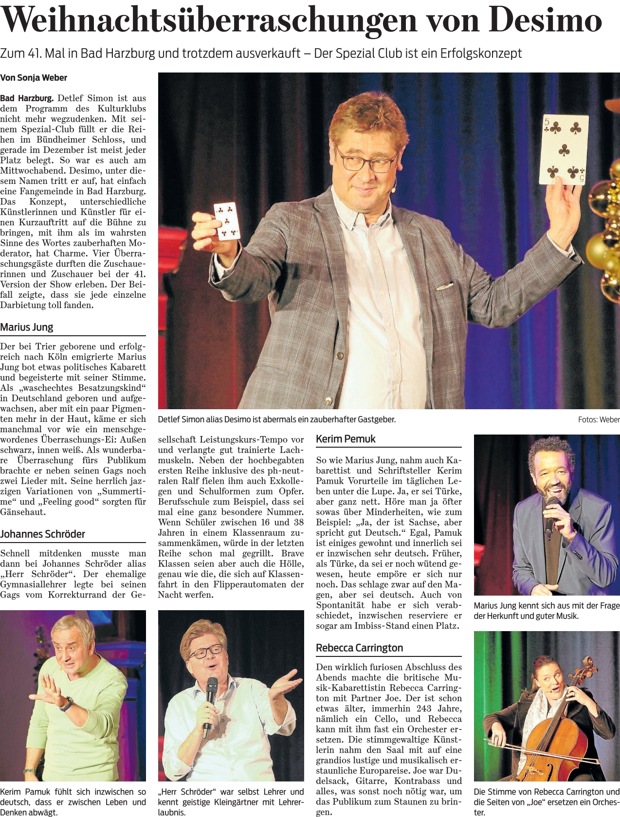 An dieser Stelle präsentieren wir Ihnen die Rezensionen unseres Programms aus der „Goslarschen Zeitung“. So können Sie noch einmal in Erinnerungen schwelgen und unsere Veranstaltungen in Ruhe Revue passieren lassen.