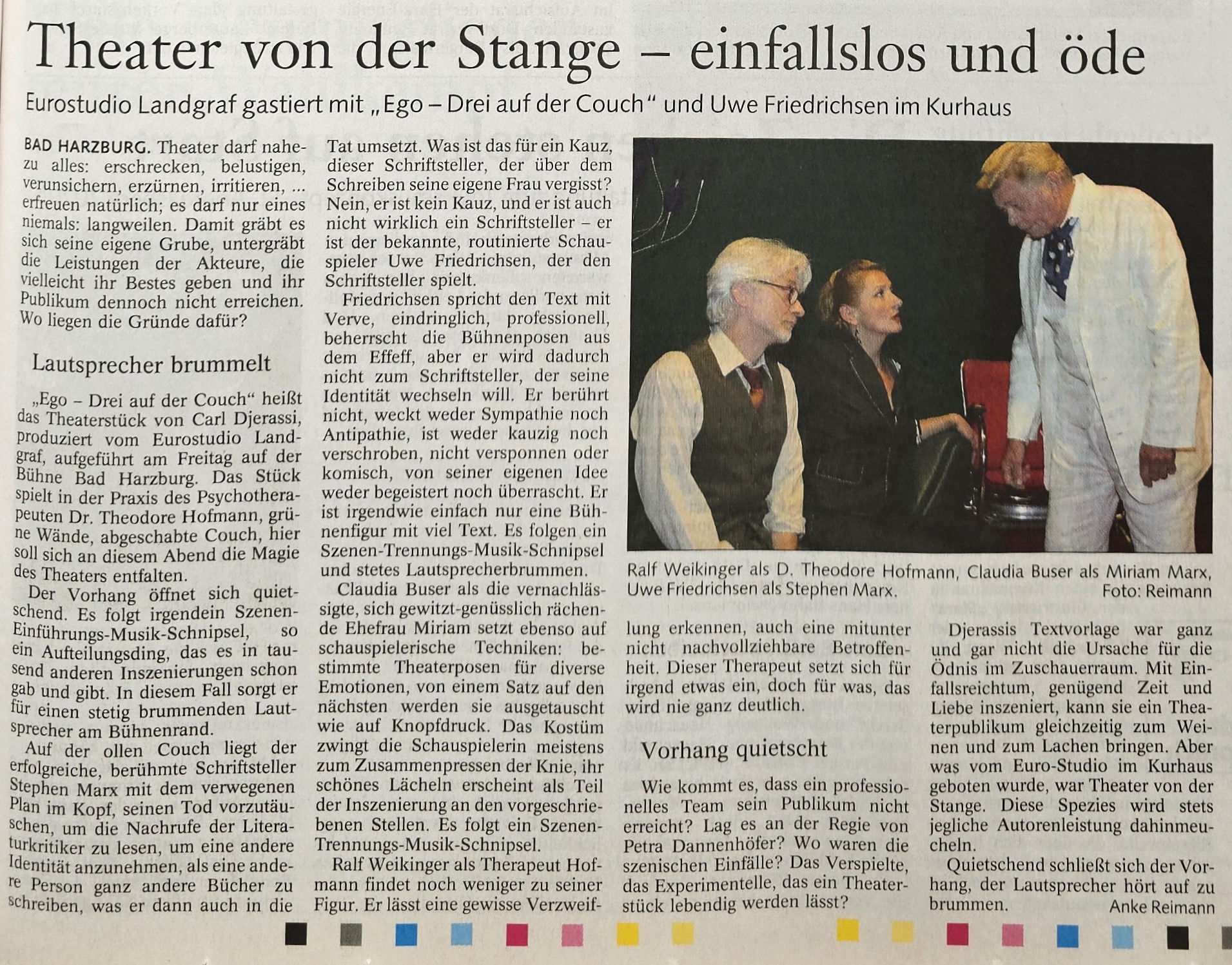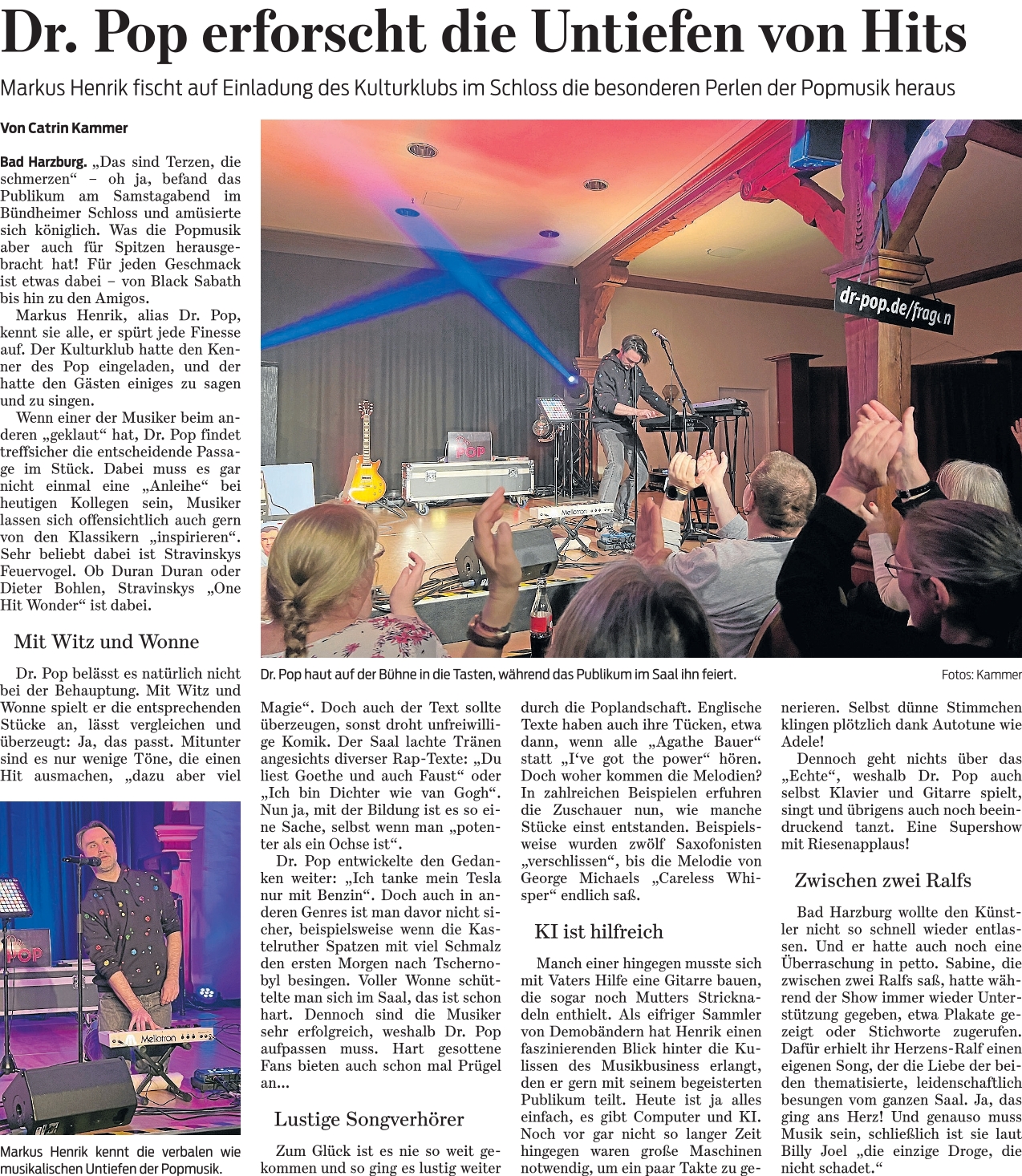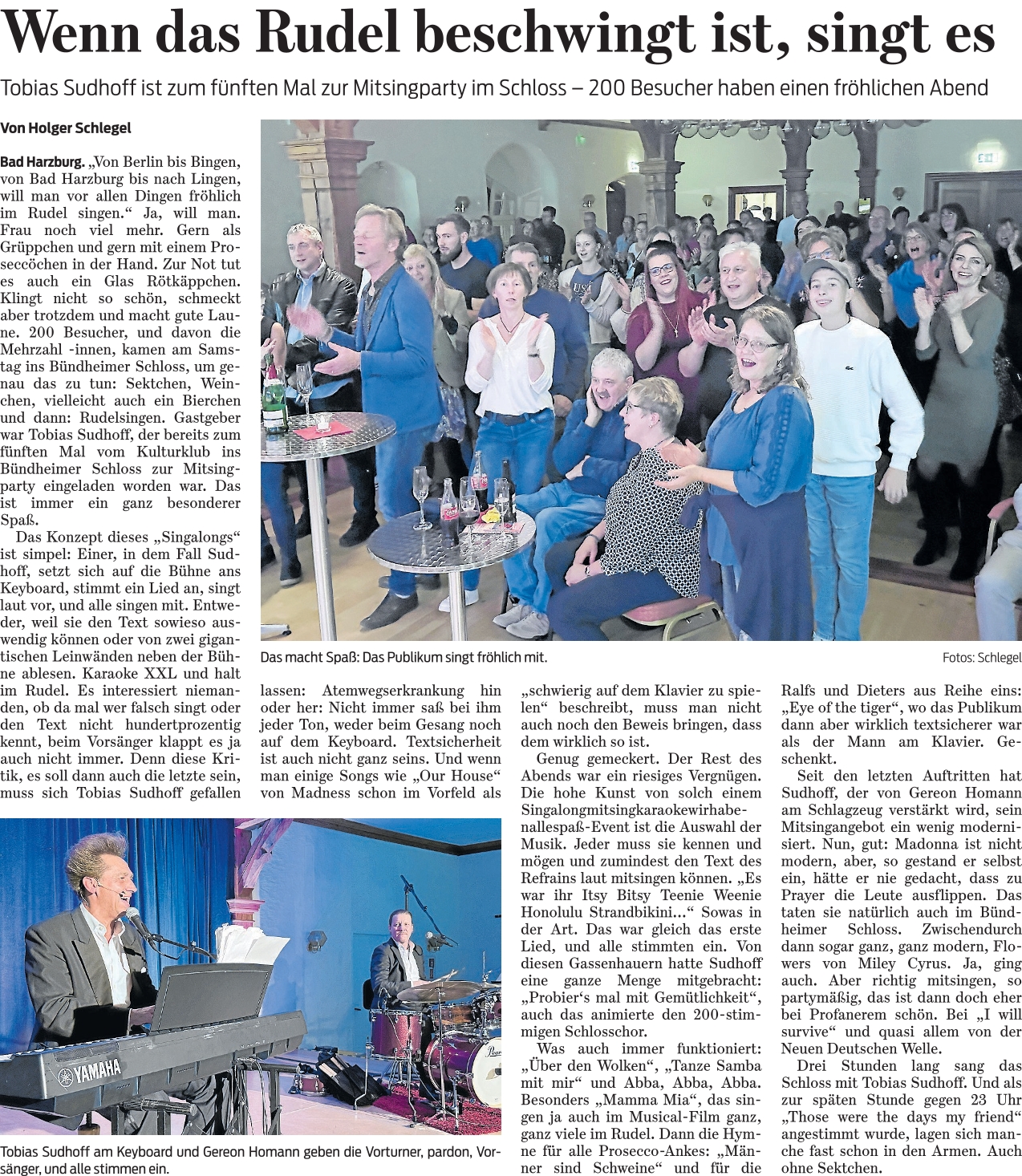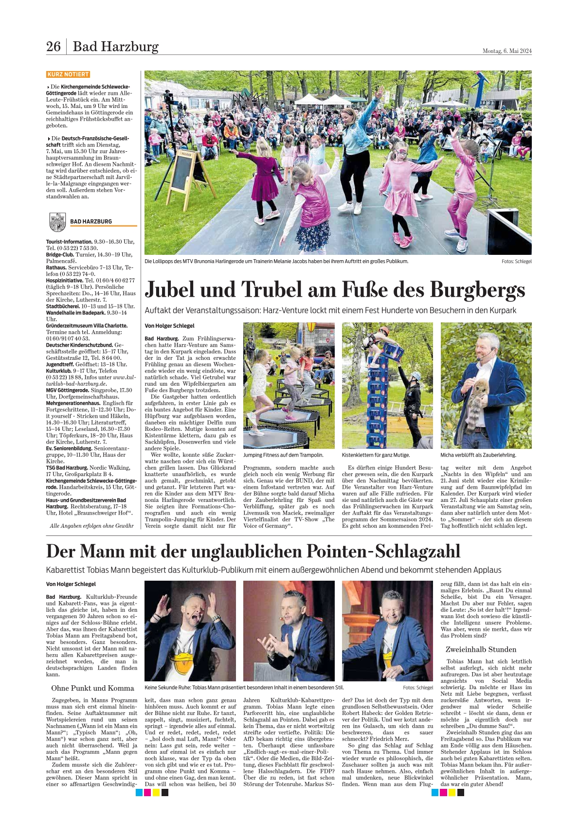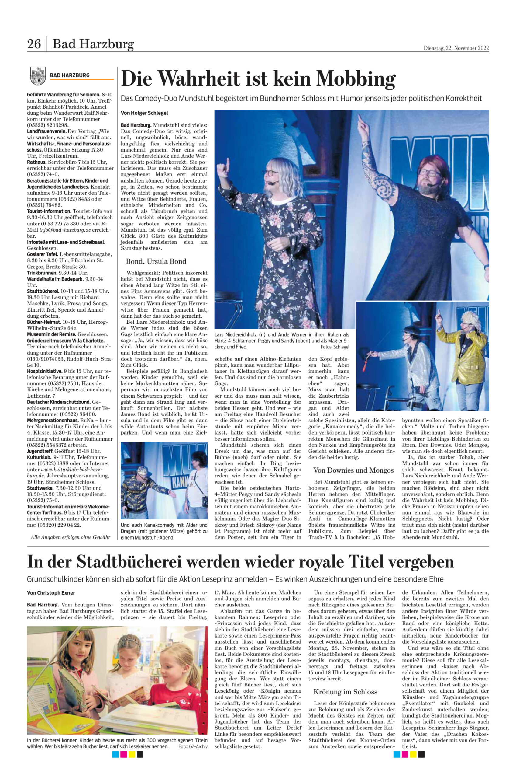 An dieser Stelle präsentieren wir Ihnen die Rezensionen unseres Programms aus der „Goslarschen Zeitung“. So können Sie noch einmal in Erinnerungen schwelgen und unsere Veranstaltungen in Ruhe Revue passieren lassen.