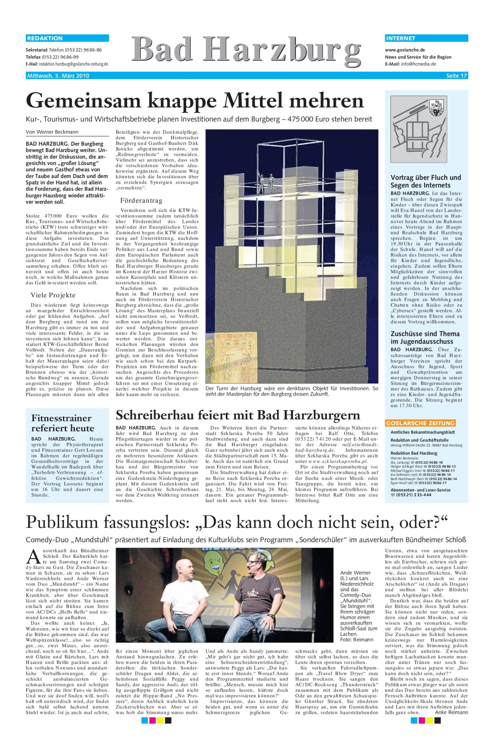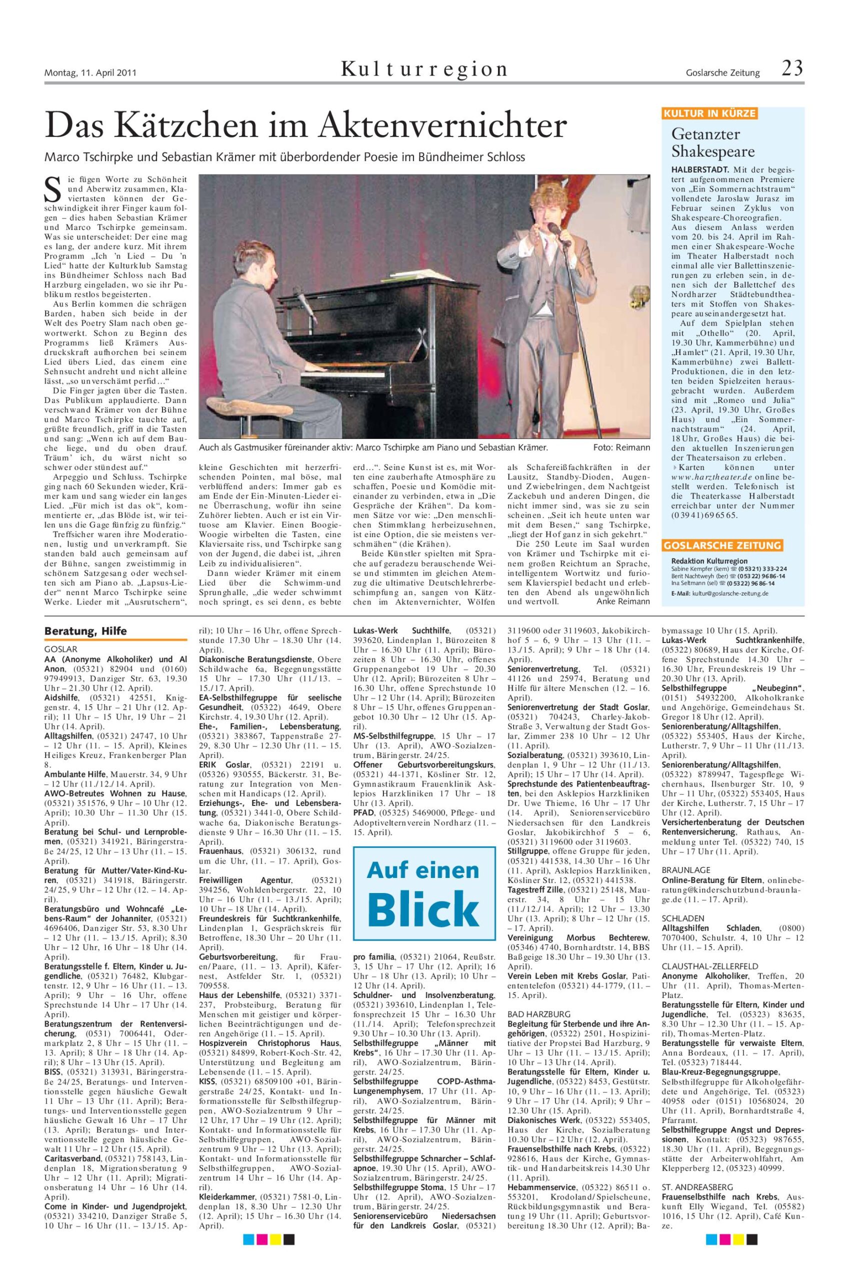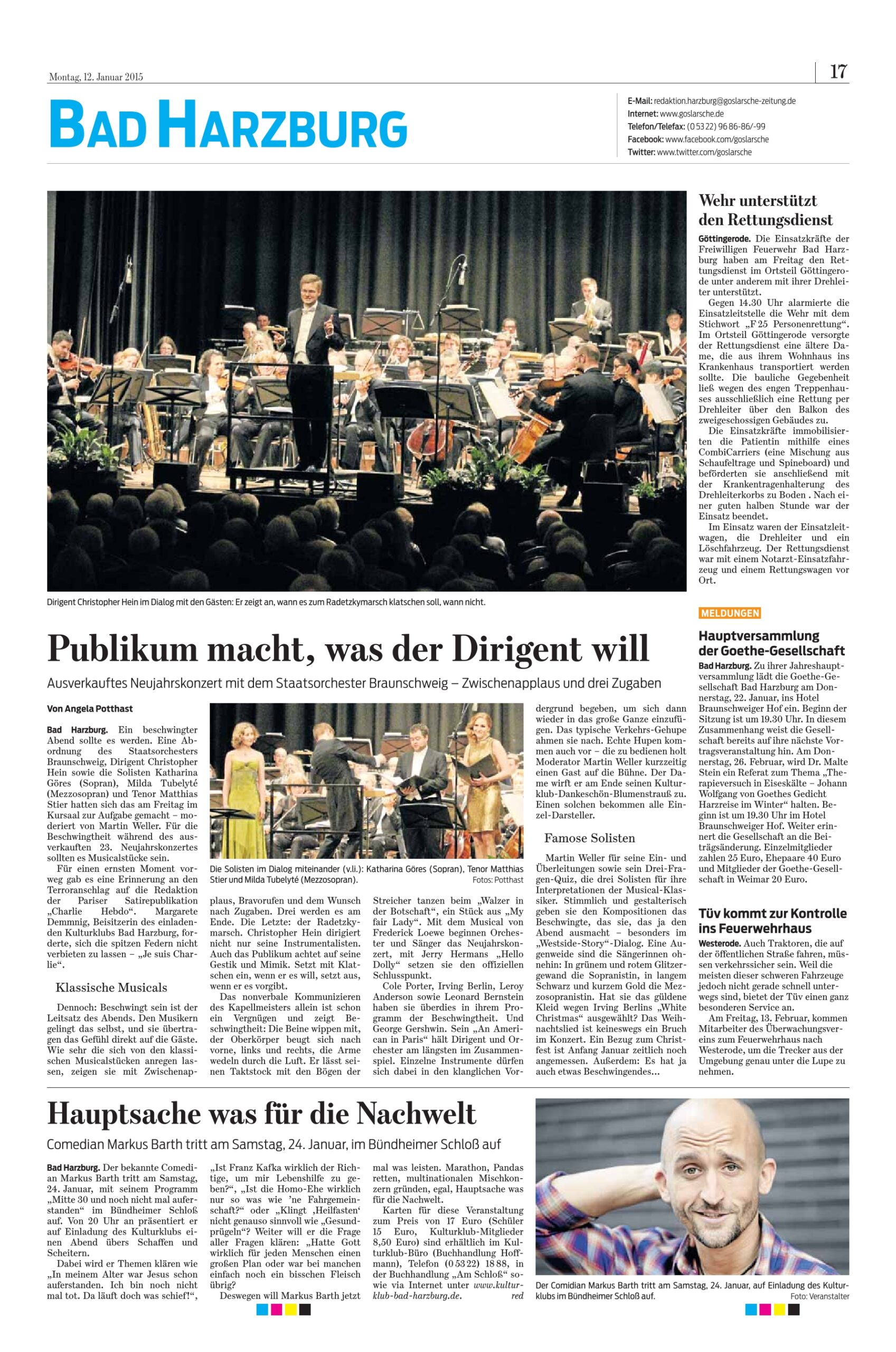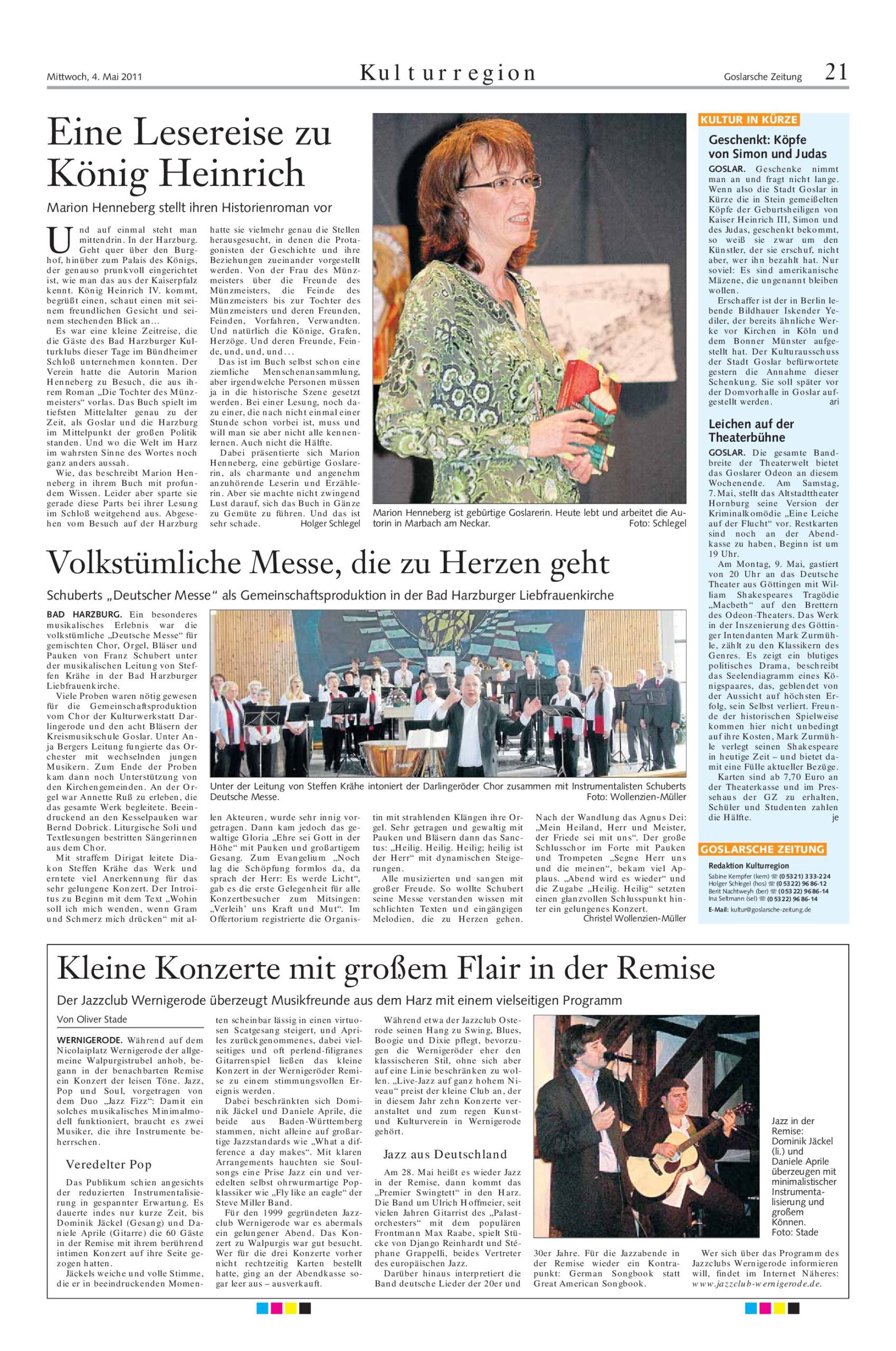 Unsere Veranstaltungen im Spiegel der "Goslarschen Zeitung"