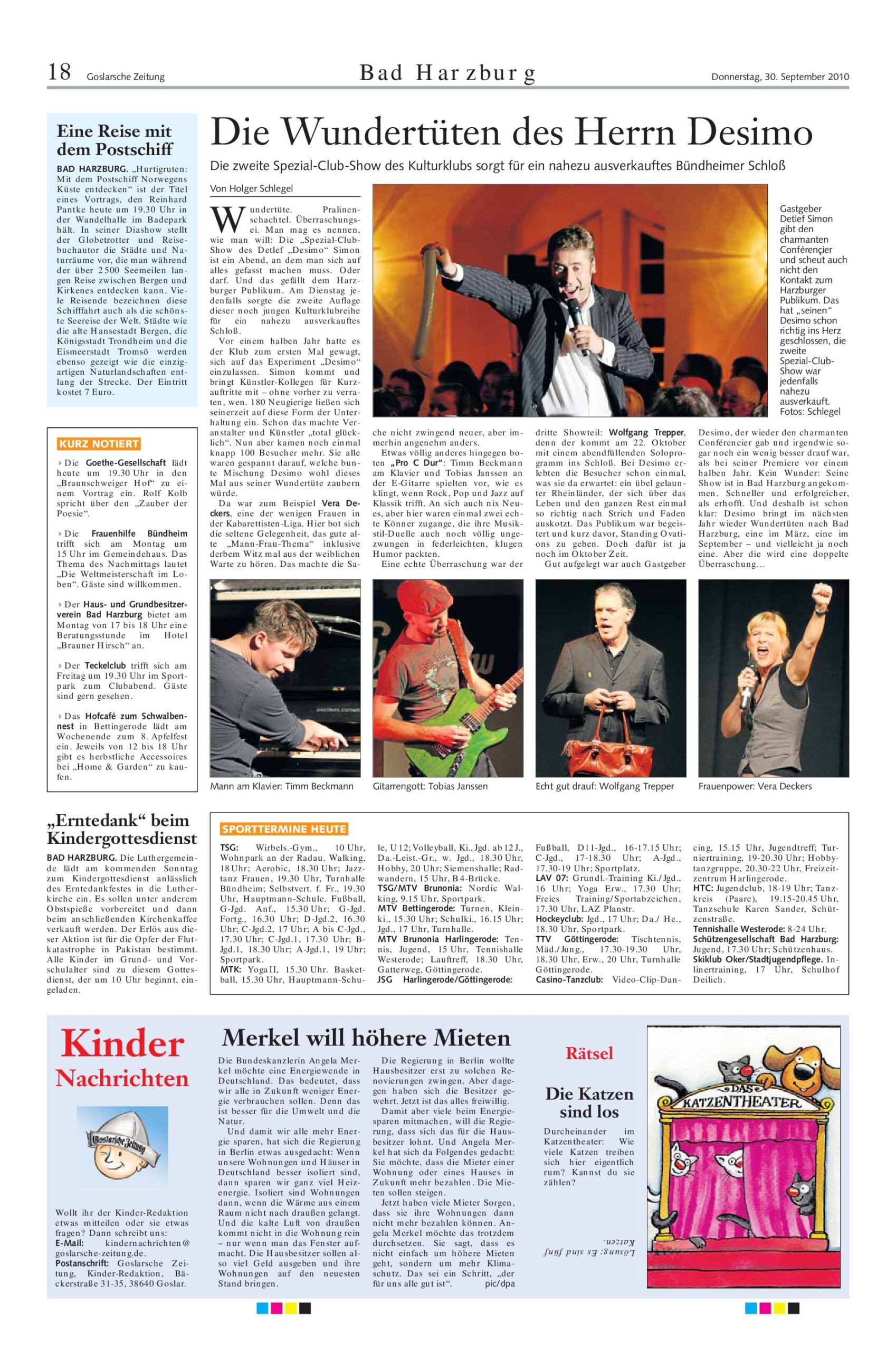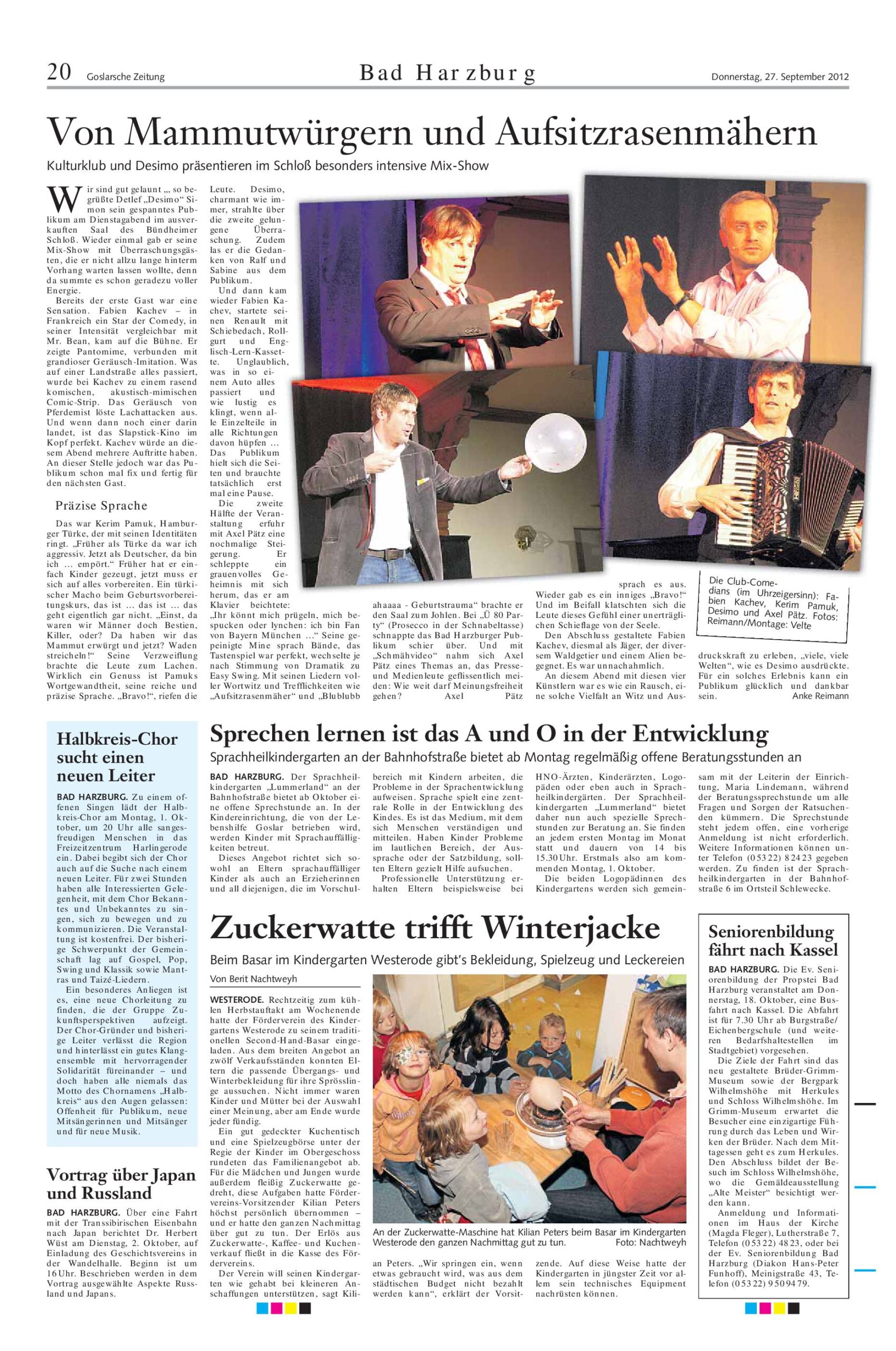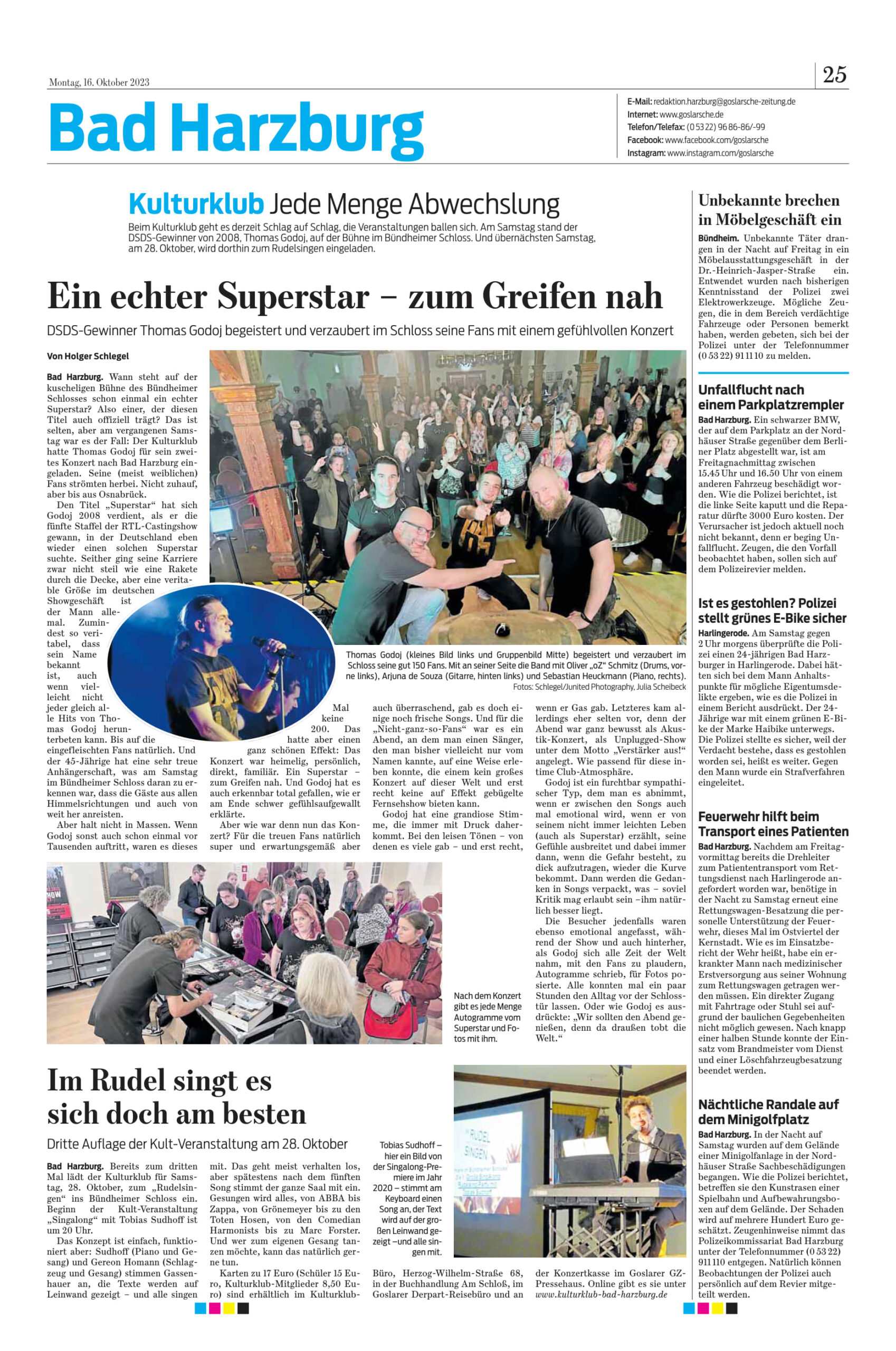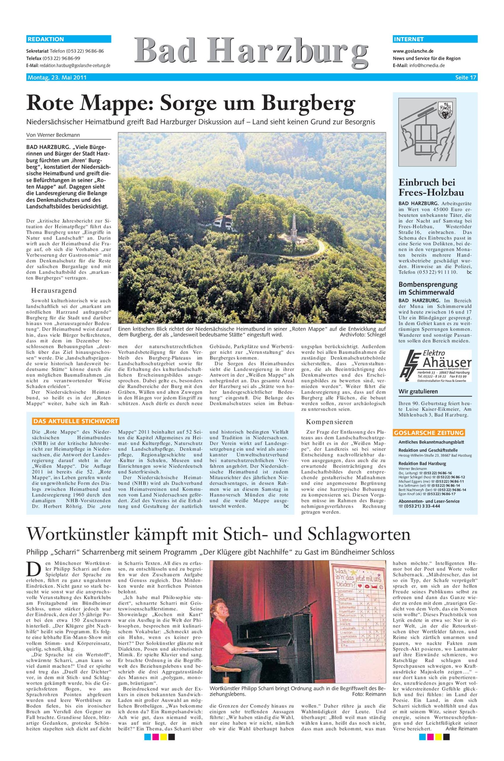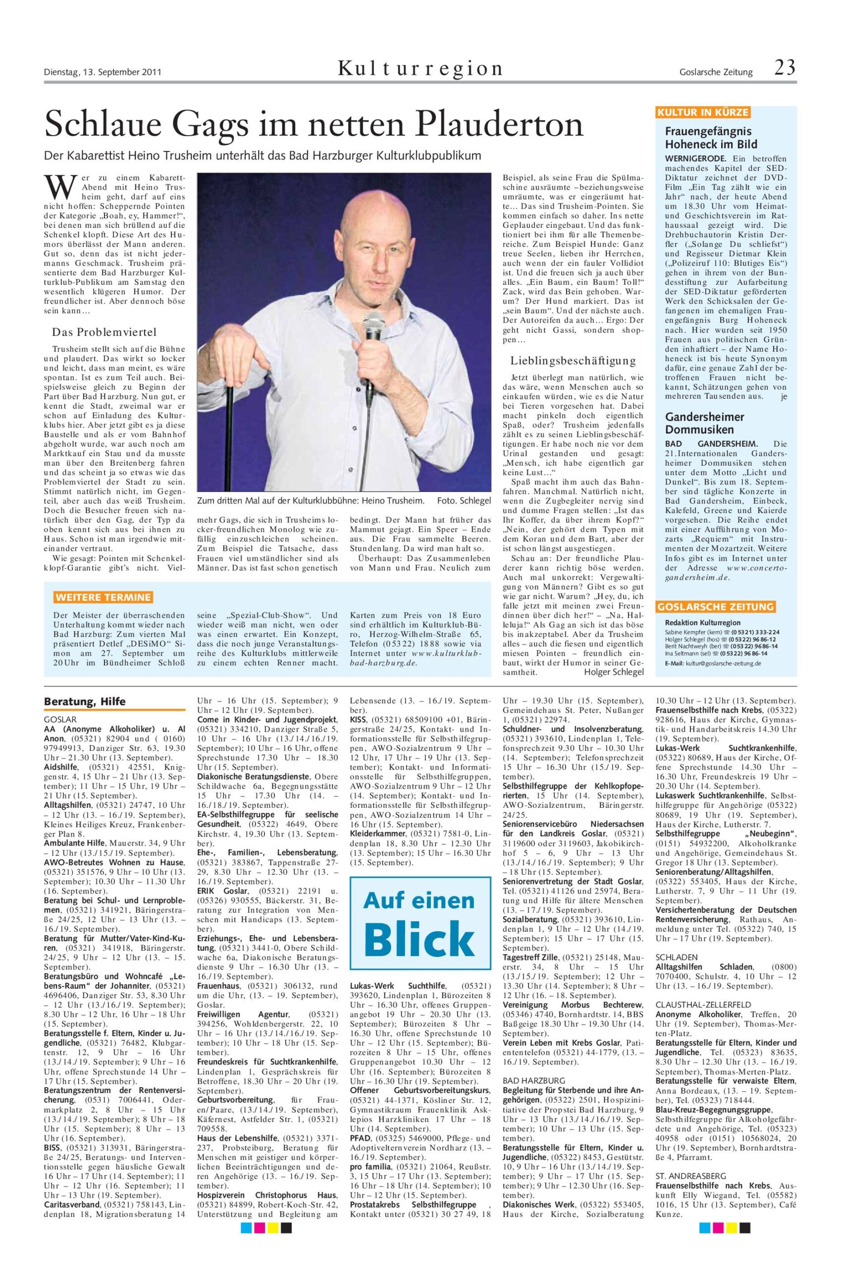 Unsere Veranstaltungen im Spiegel der "Goslarschen Zeitung"