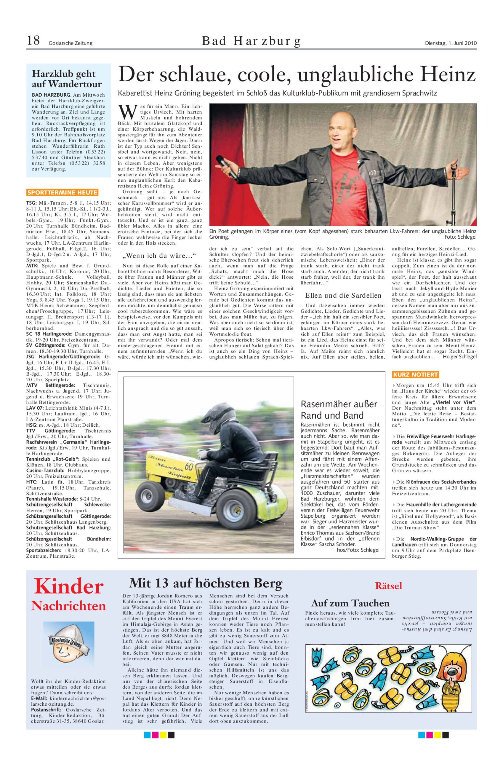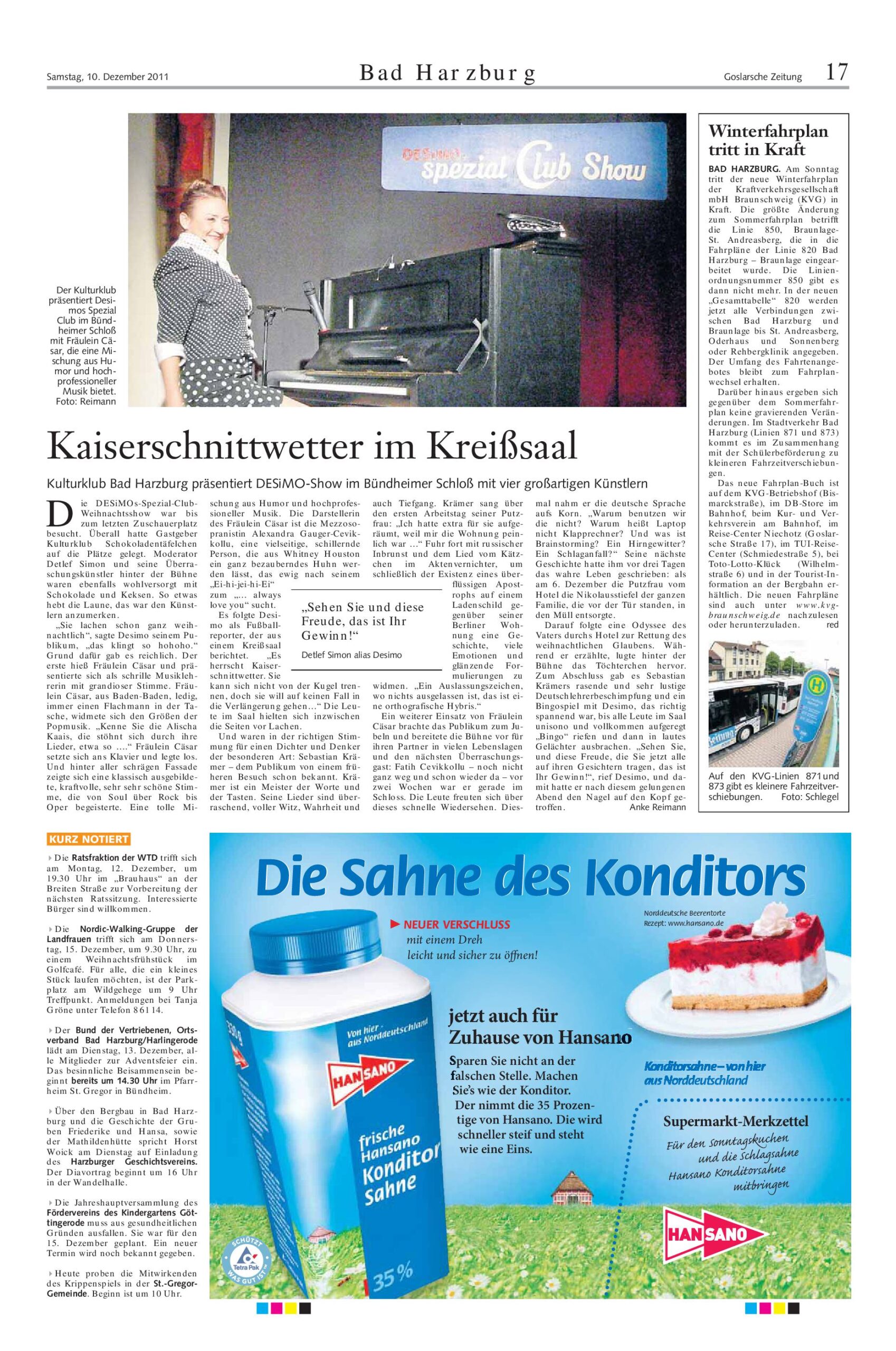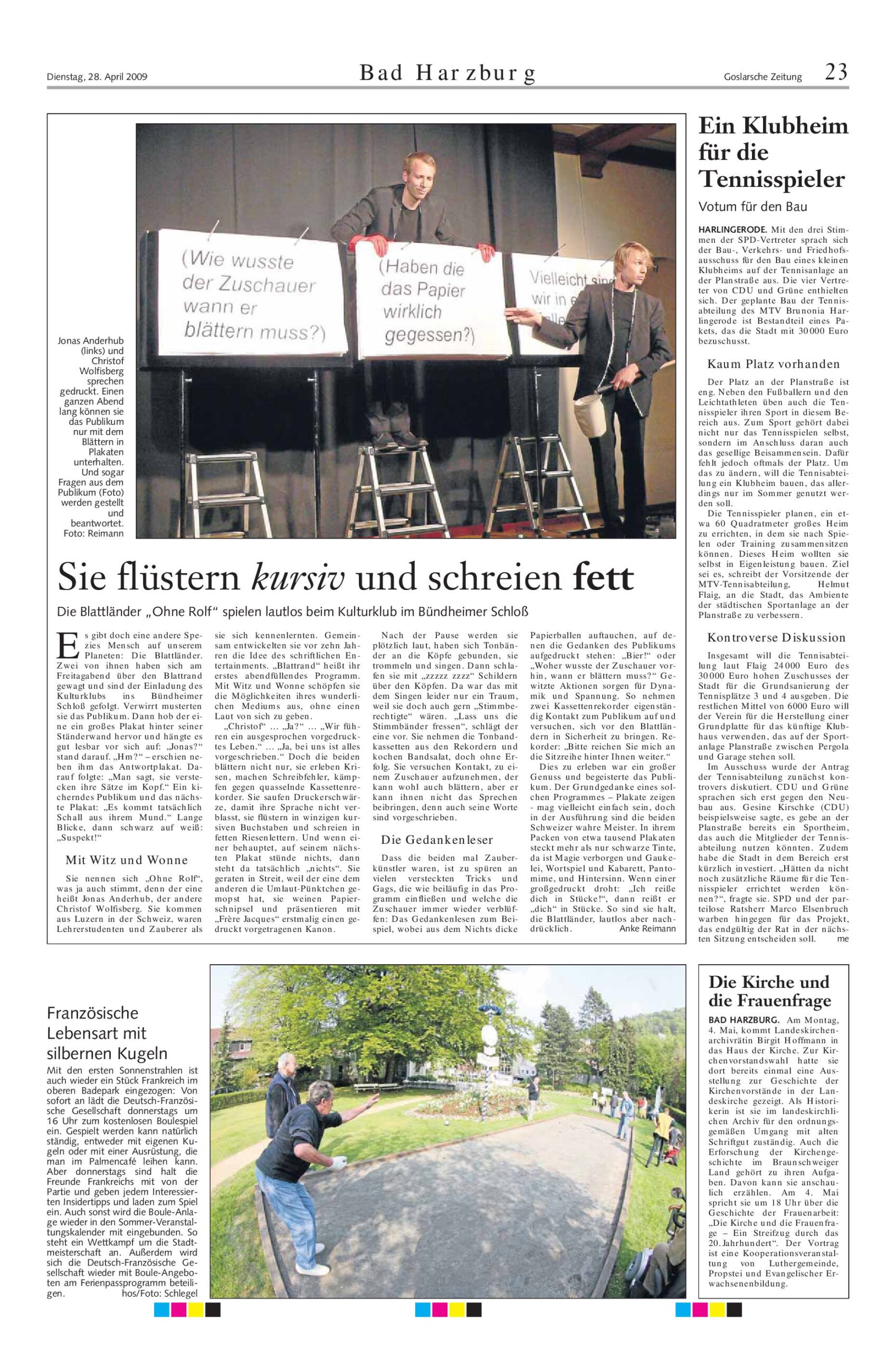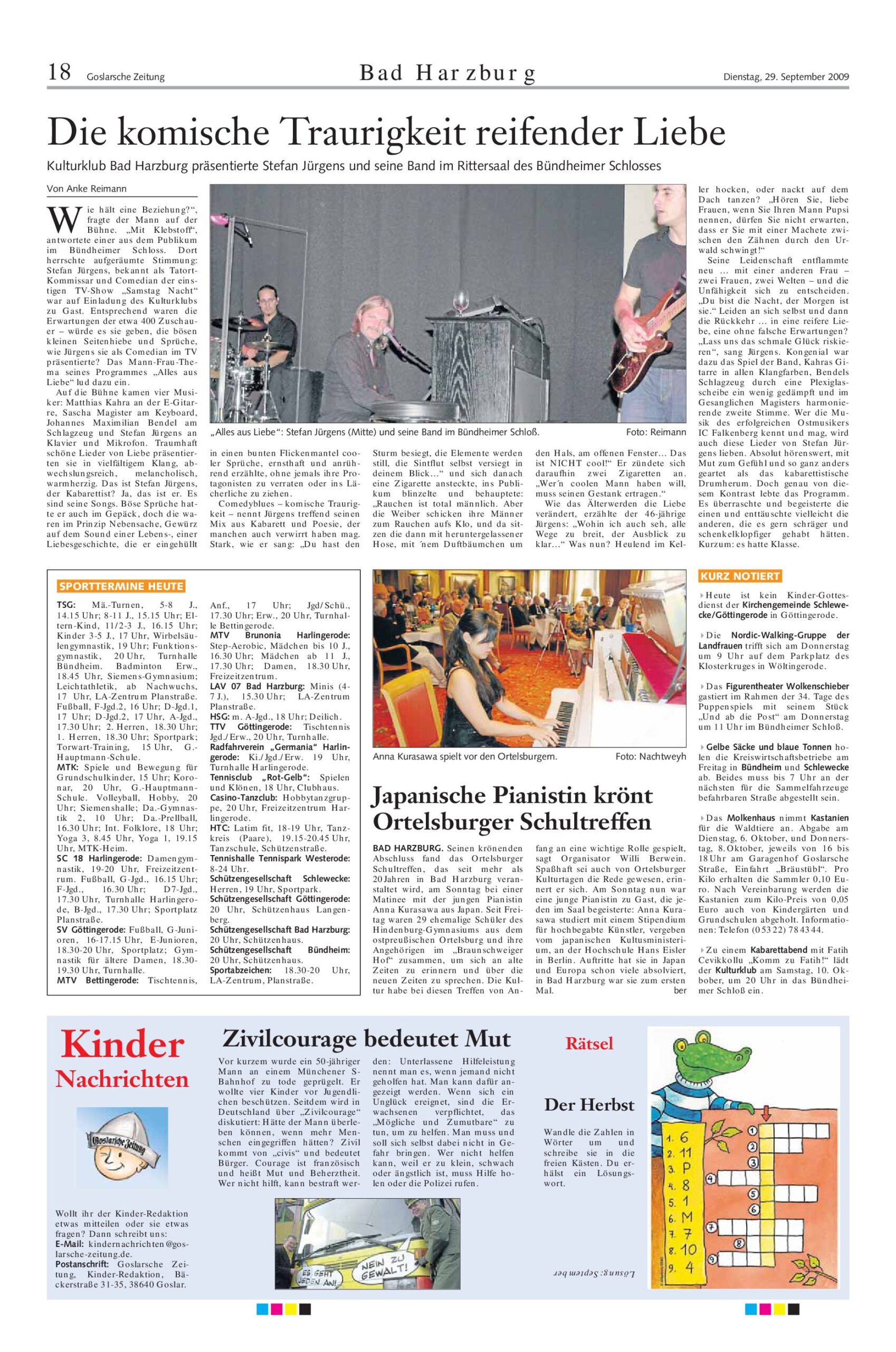 Unsere Veranstaltungen im Spiegel der "Goslarschen Zeitung"