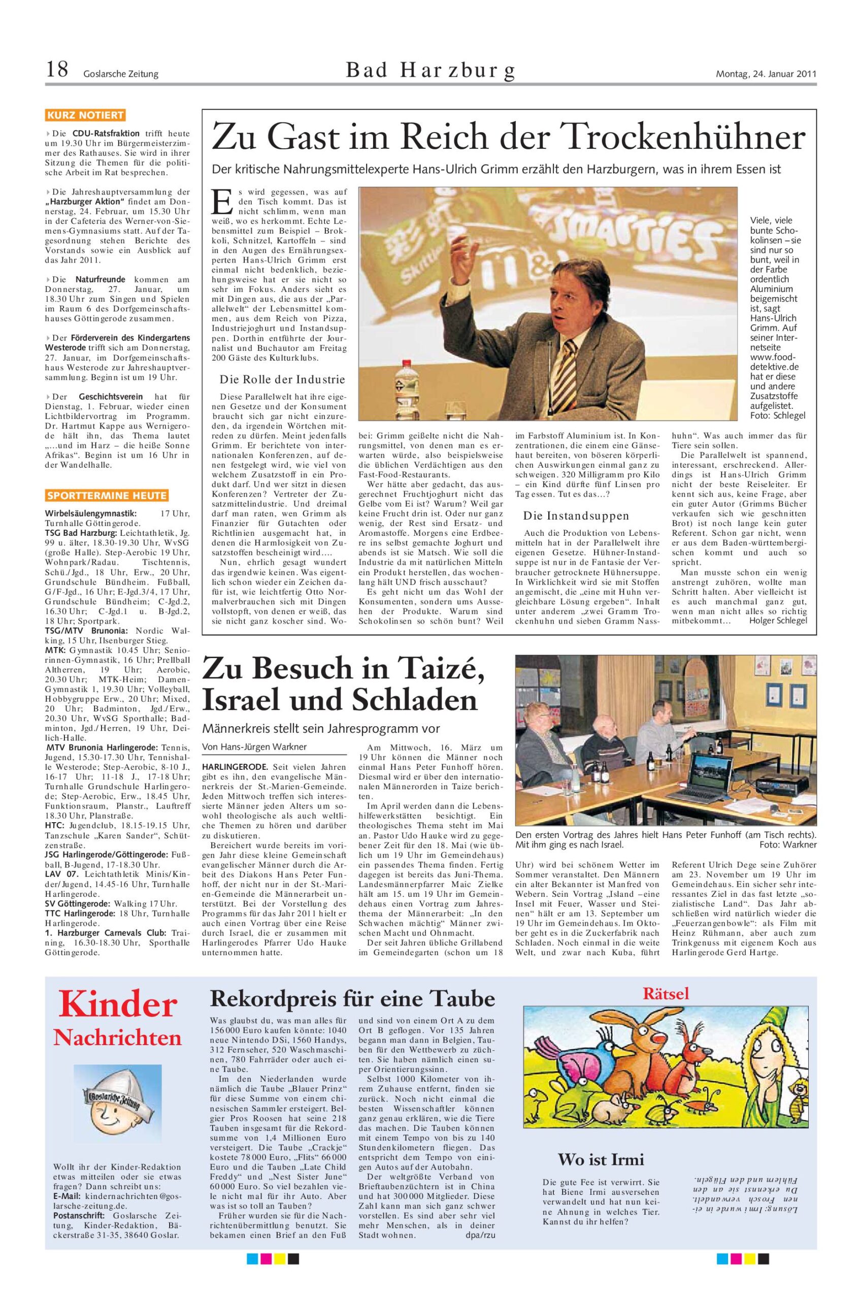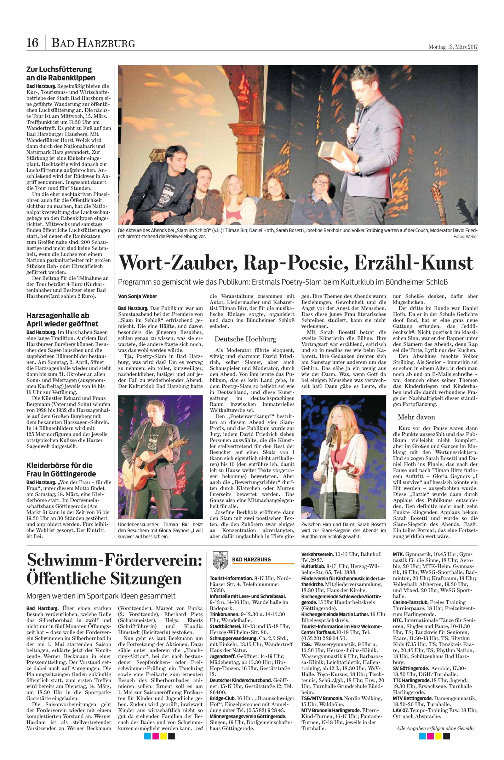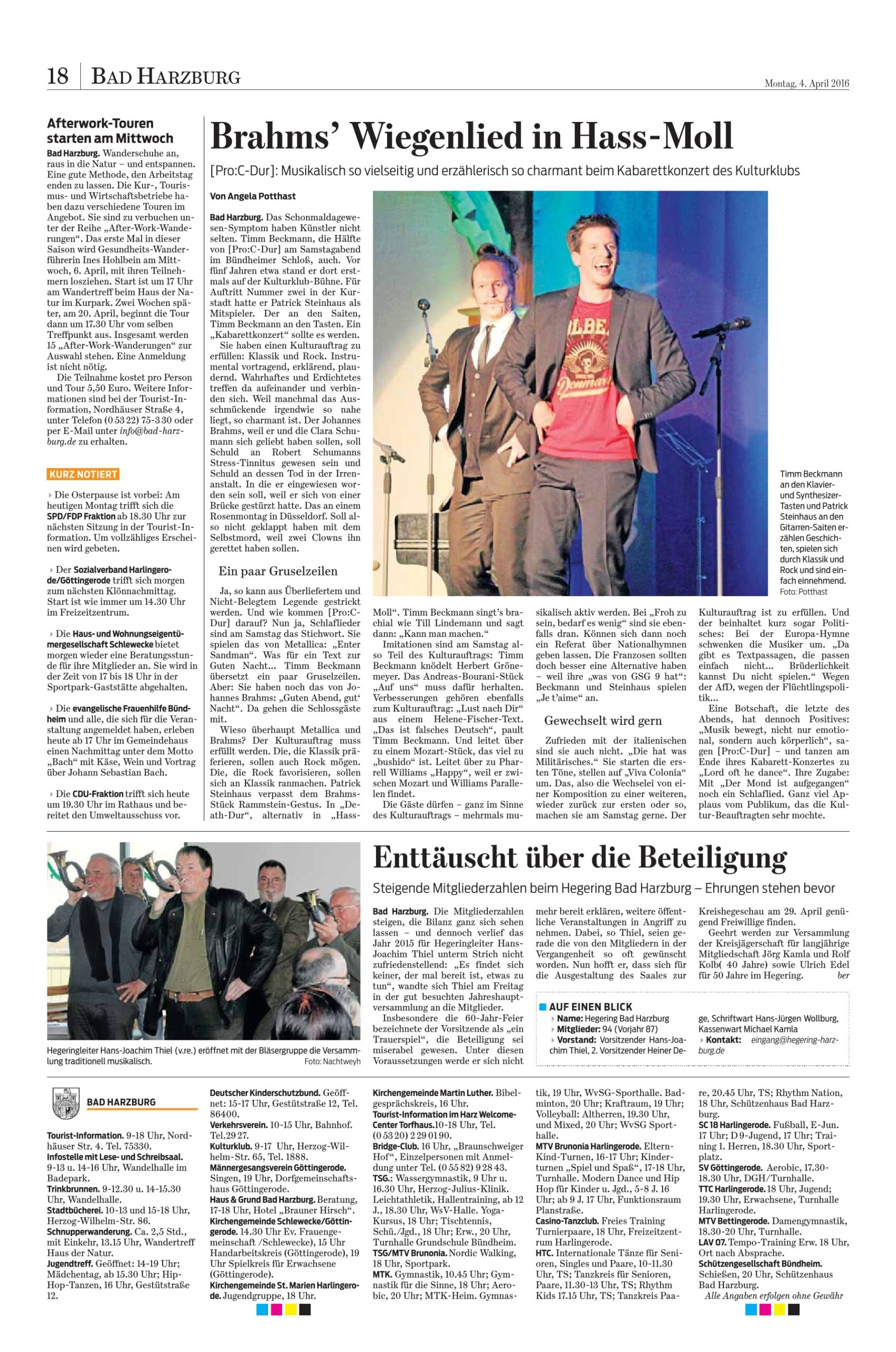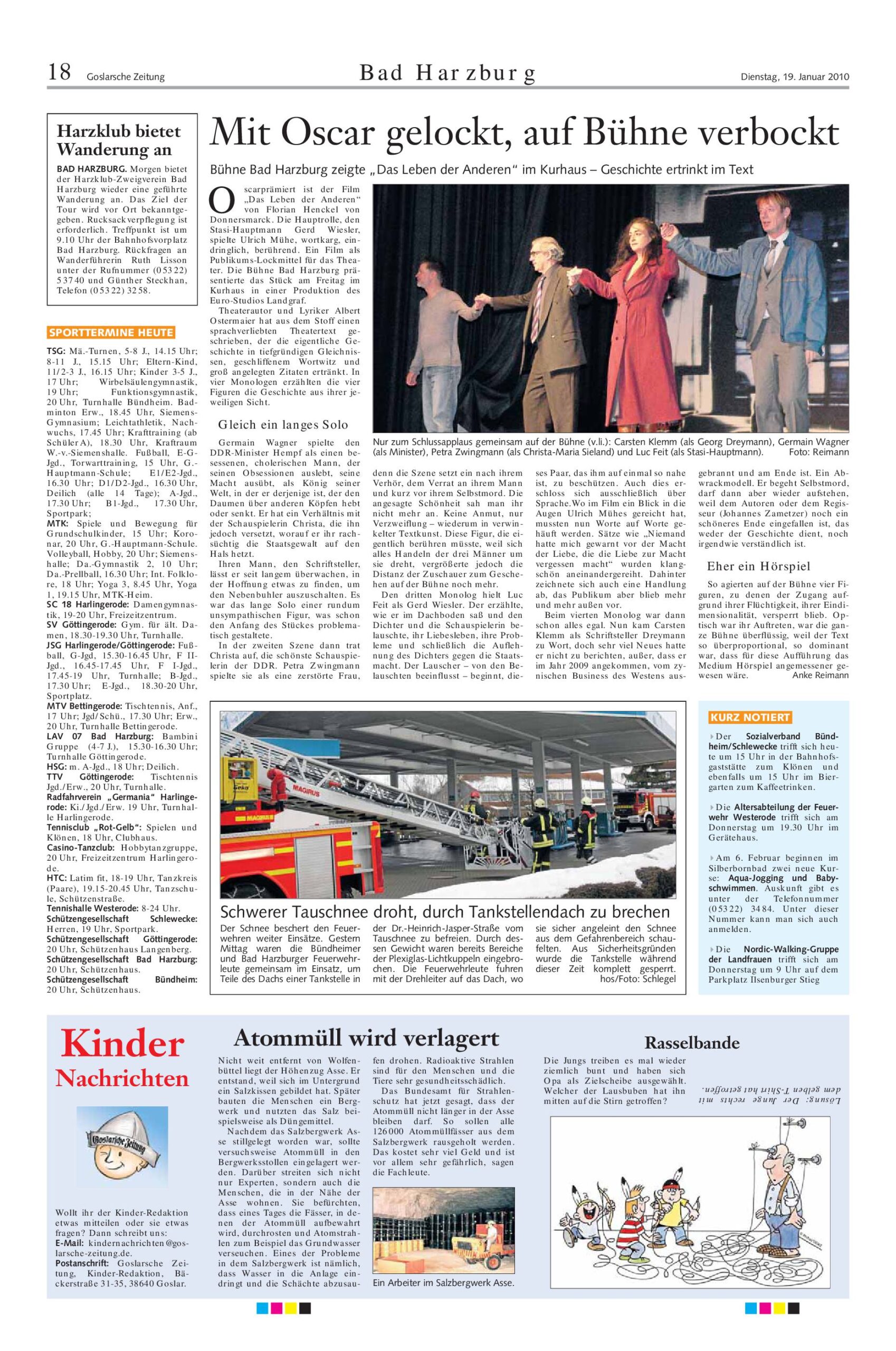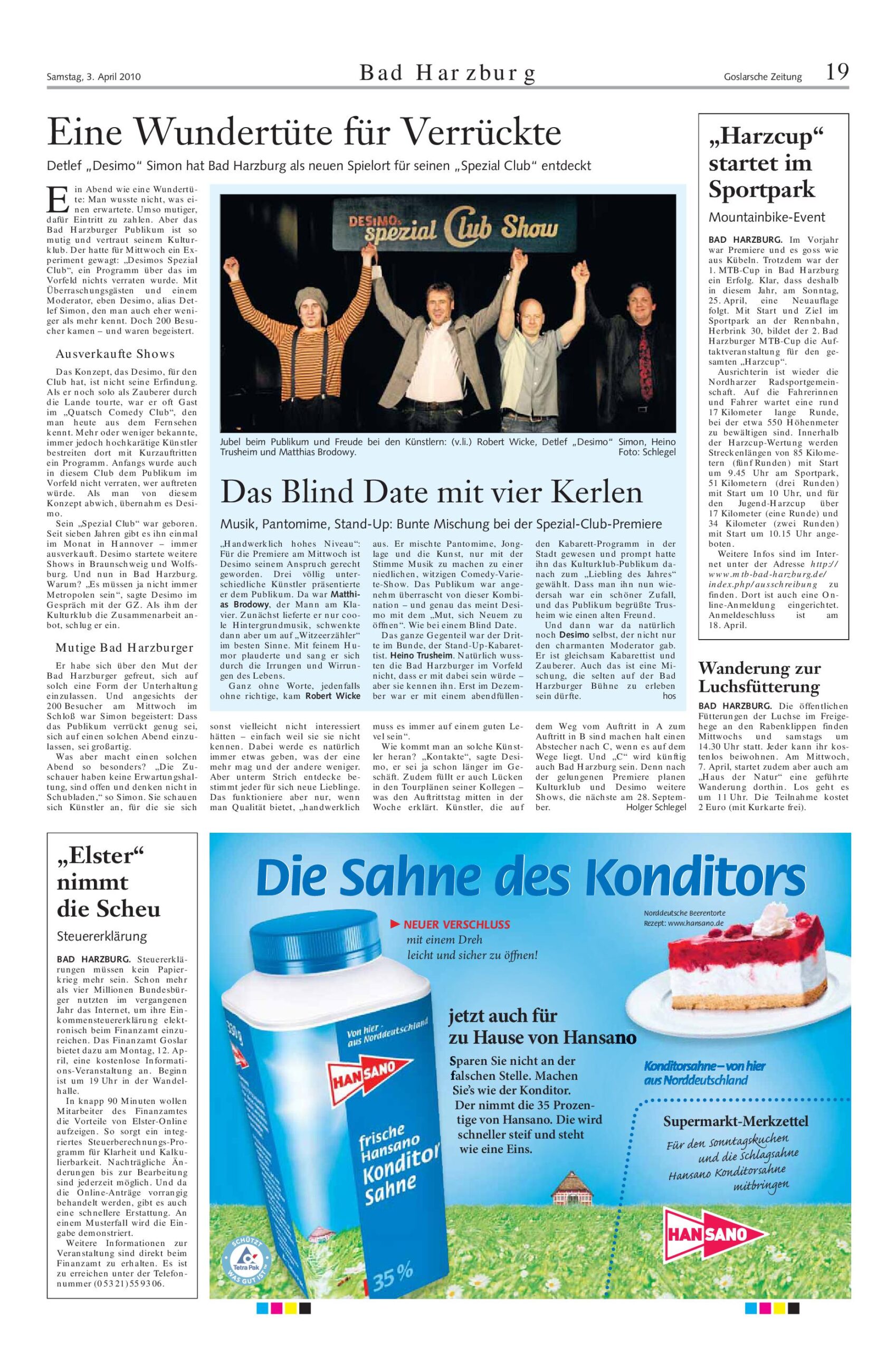 Unsere Veranstaltungen im Spiegel der "Goslarschen Zeitung"