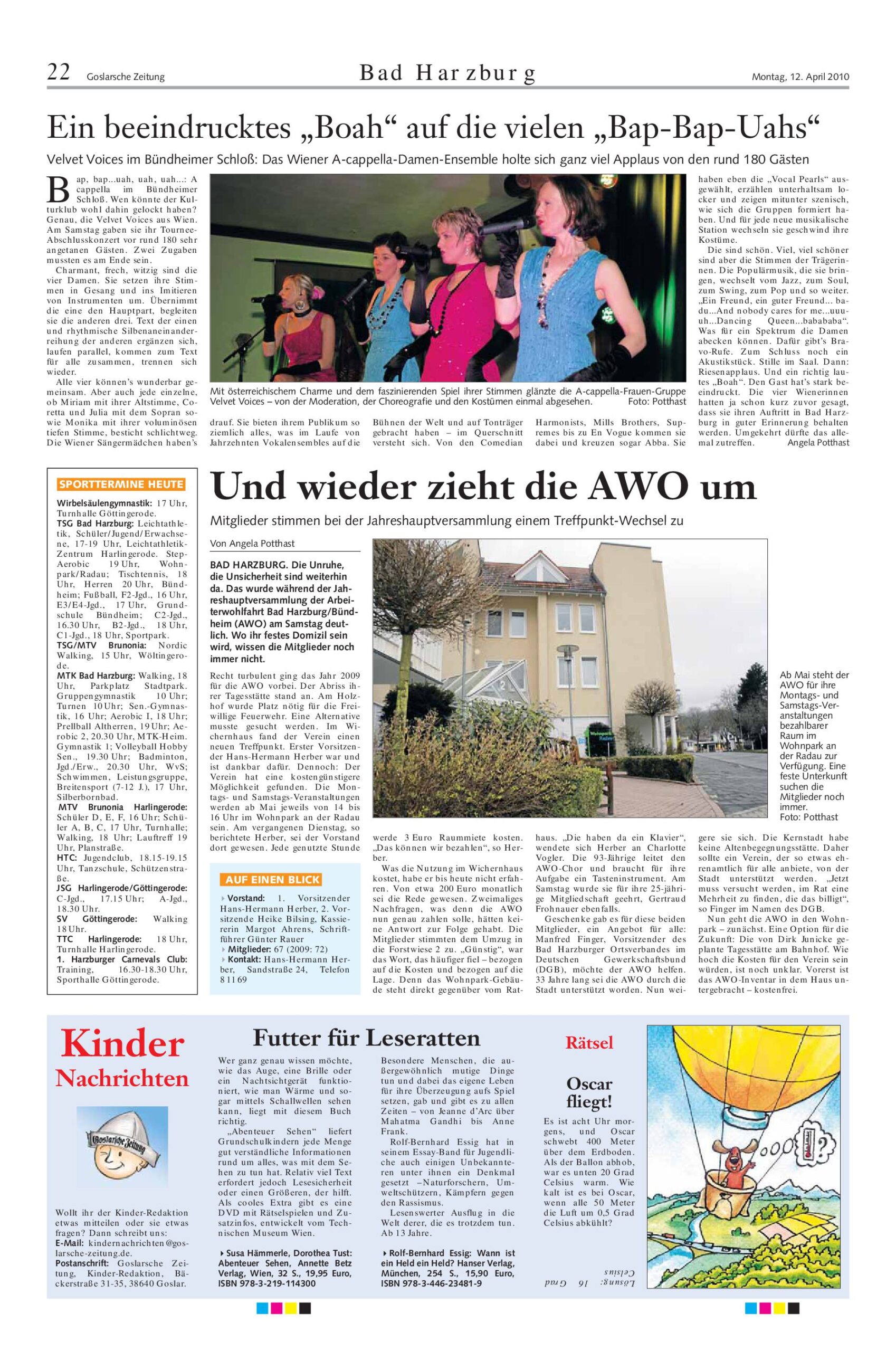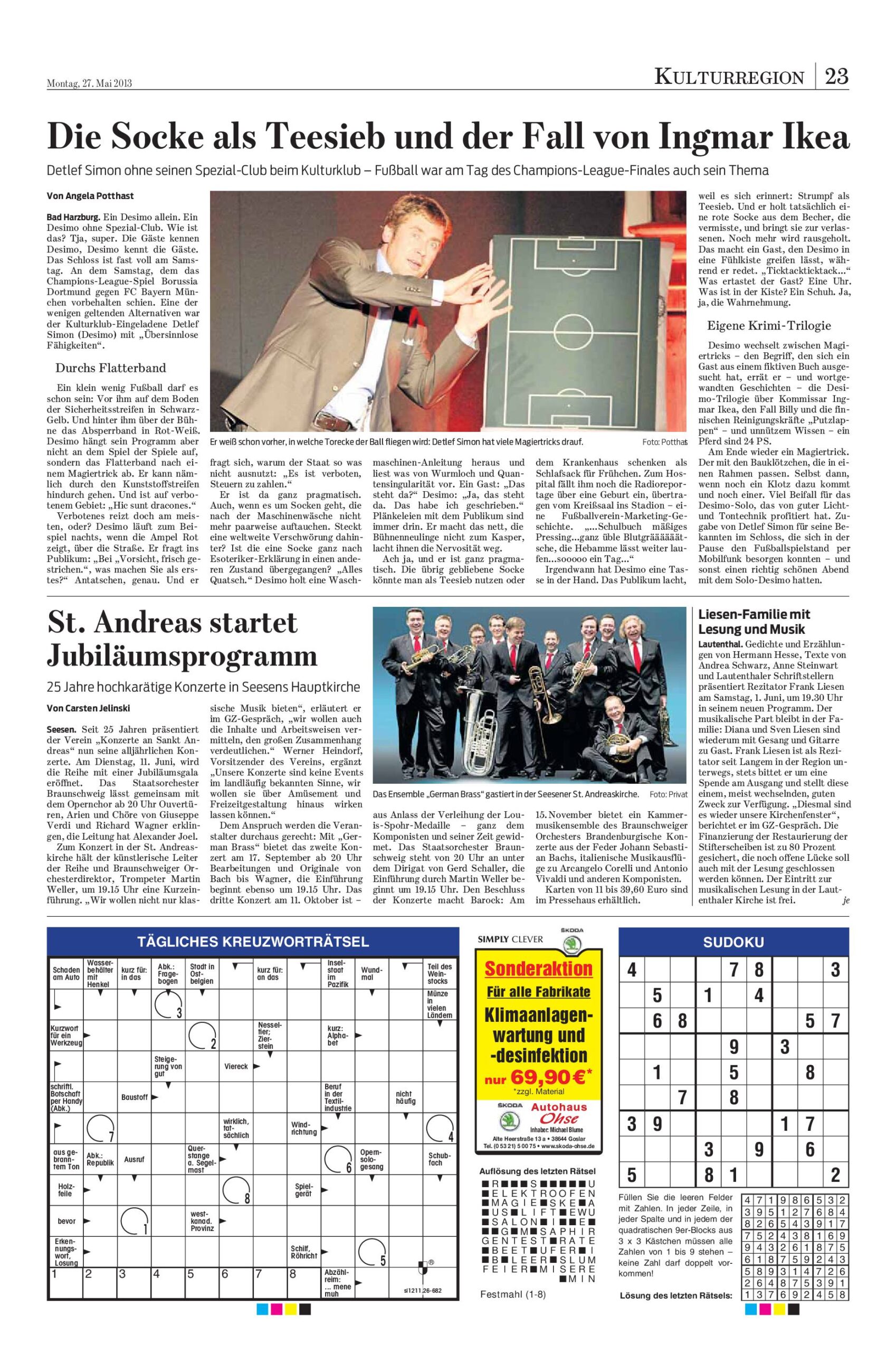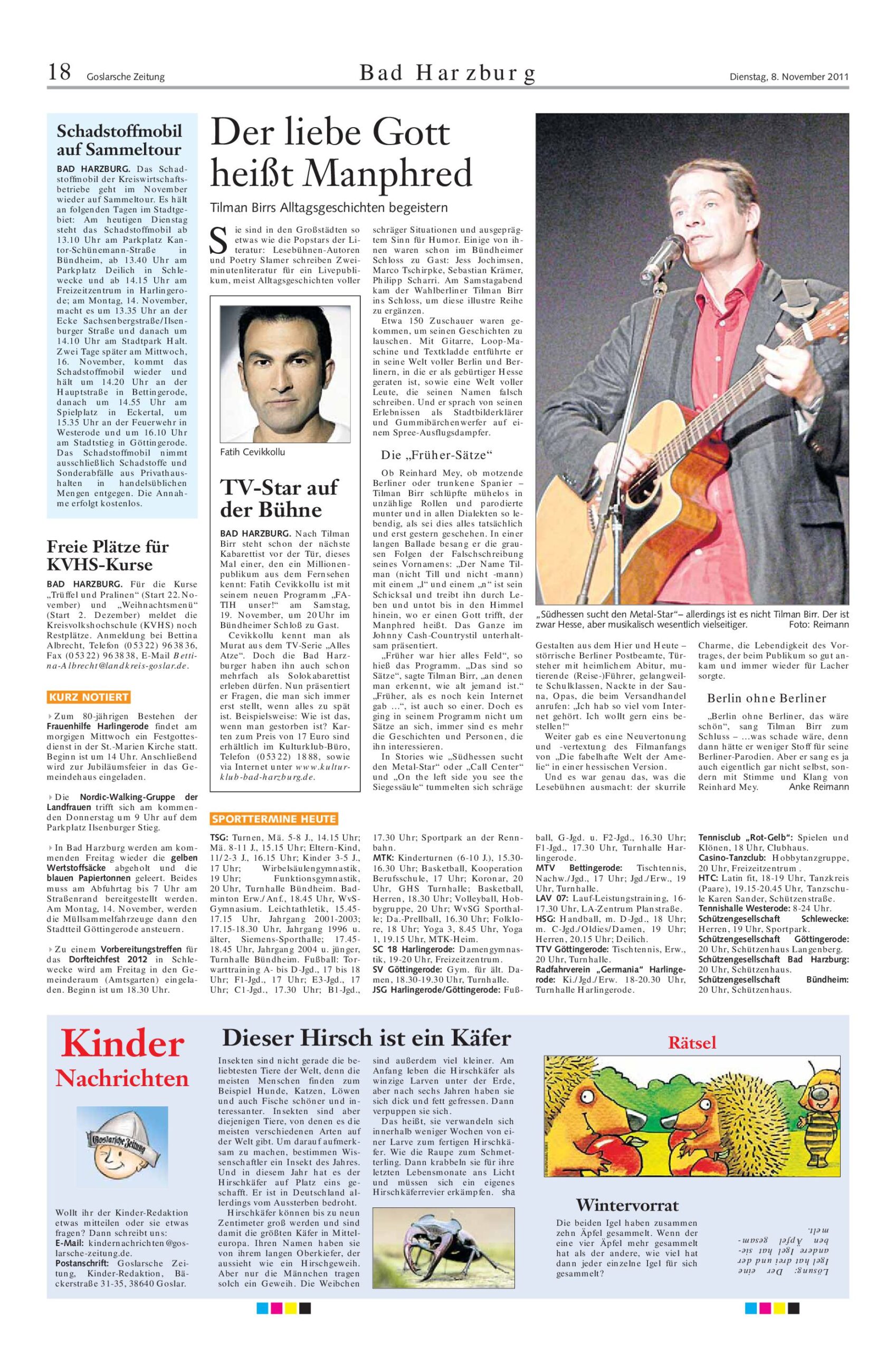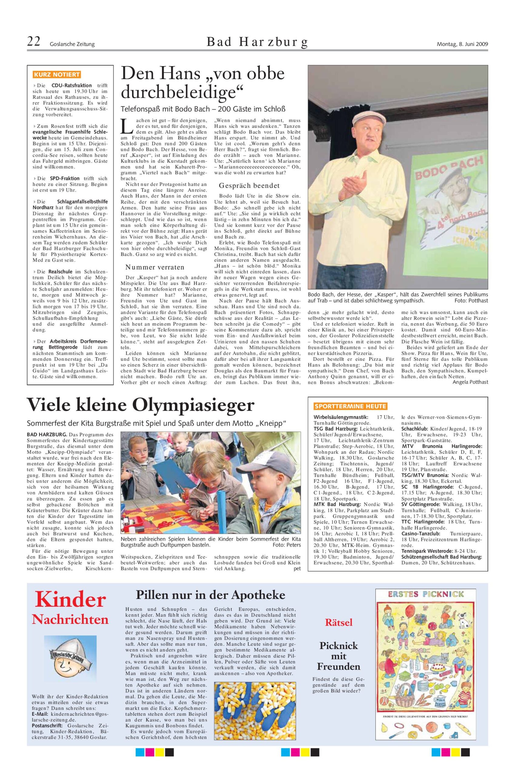 Unsere Veranstaltungen im Spiegel der "Goslarschen Zeitung"
