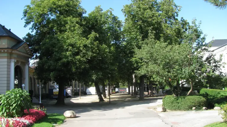 In dieser besonderen Parkatmosphäre genießen die Bands und das Publikum den Blick auf die Kastanienbäume sowie die Trink- und Wandelhalle – ebenfalls ein historisches Gebäude, das Ende des 19. Jahrhunderts erbaut wurde.